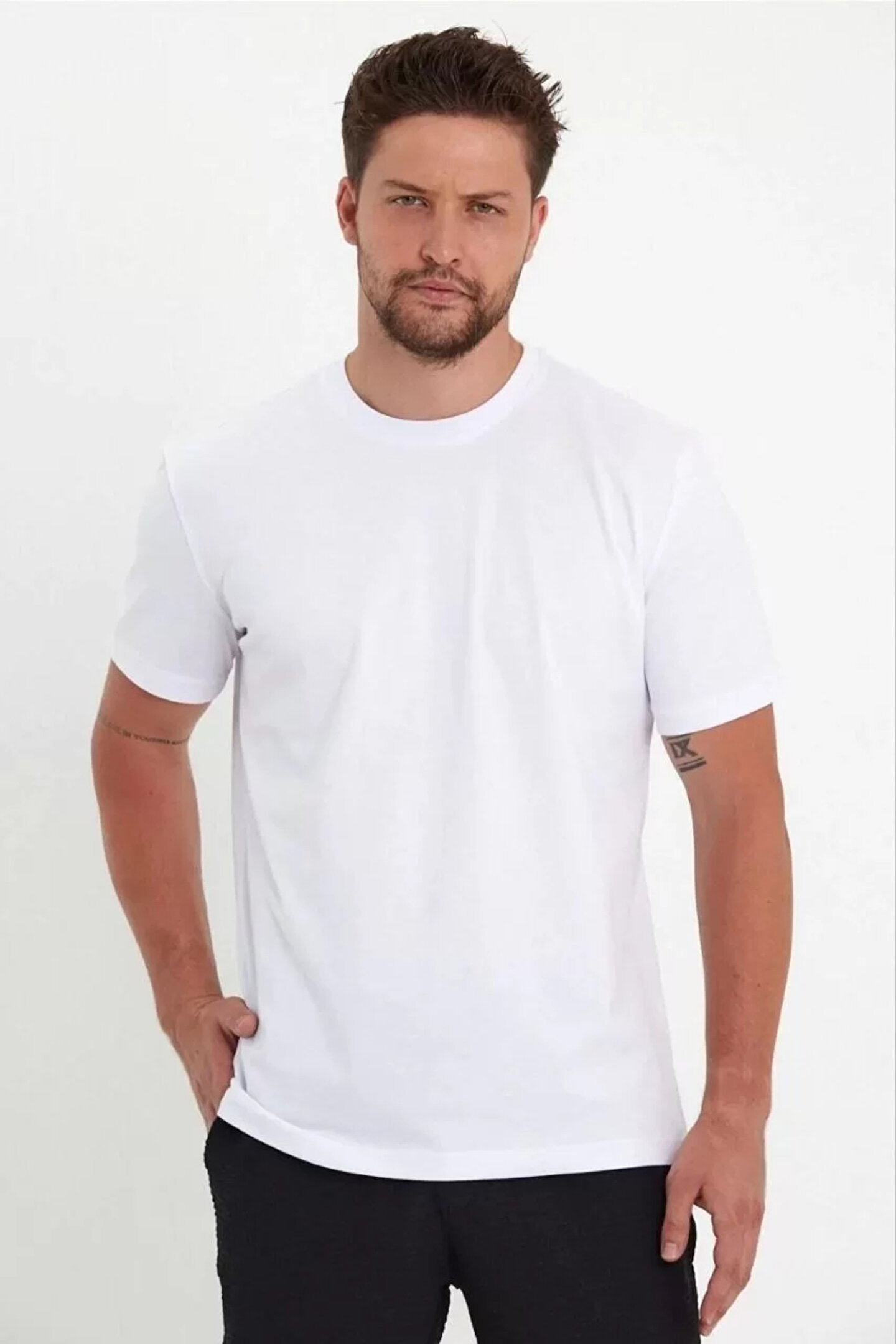 Erkek 24/1 Düz A Kalite Oversize T-shirt - Beyaz