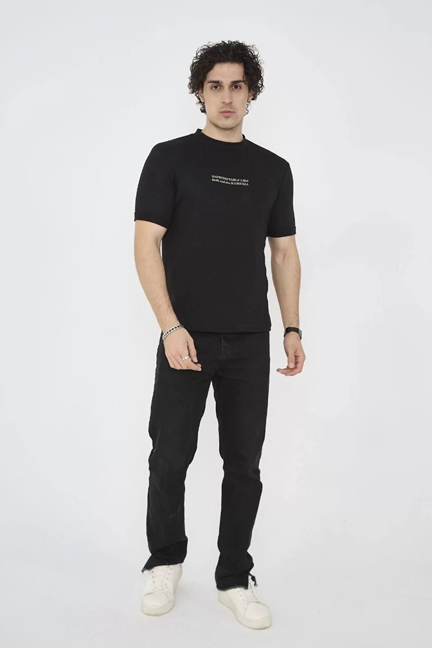 LUMİART Unisex Bisiklet Yaka Slim fit T-Shirt- Siyah
