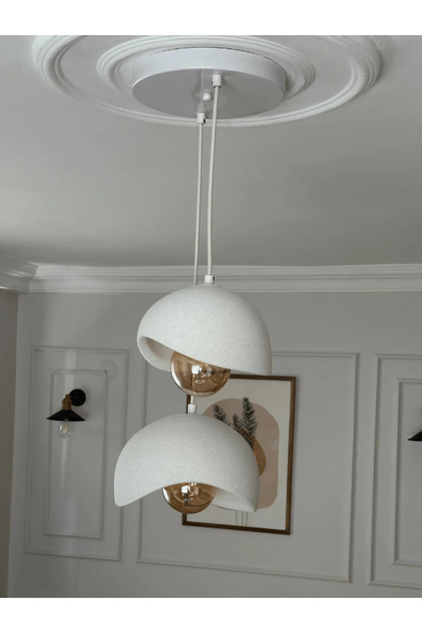 Beton Görünümlü İskandinav & Bohem Tarz 2’li Sarkıt Avize - Profesyonel Tasarım, Gün Işığı Rustik Ampul İçerir ⸻ Ürün Açıklaması Lumiere Design 2’li Beton Görünümlü Sarkıt Avize – Üst Düzey İşçilik, Şık ve Dayanıklı Tasarım Evinize modern, sofistike ve zarif bir dokunuş katacak Lumiere Design 2’li Beton Görünümlü Sarkıt Avize, kaliteli malzeme ve profesyonel işçilik ile üretilmiştir.; Hem dayanıklılığı hem de göz alıcı tasarımıyla yaşam alanlarınıza estetik bir hava katar.; ✅ Üst Düzey Kalite & Profesyonel İşçilik •Dayanıklı ve uzun ömürlü malzemeler kullanılarak üretilmiştir.; Beton veya seramik gibi hassas değildir; darbelere karşı dayanıklı sert plastik başlıklar sayesinde güvenle kullanılabilir.; • Metal rozans ve demir kablo sıkıştırıcı klipsler, ürüne hem şıklık hem de sağlamlık kazandırır.; •Kaliteli kumaş kaplı kablo, sadece işlevsellik değil, aynı zamanda tasarımda modern bir görünüm sağlar.; ✅ Öne Çıkan Teknik Detaylar •Başlık Çapları: 30 cm - 20 cm •Ağırlık: 2 - 2,5 kg •Ampuller: Gün ışığı rustik ampul ile gönderilir (E27 duy uyumlu).; •Kutu İçeriği: Montaj için gerekli vida ve dübeller dahildir.; •Kablo Uzunluğu: 1 metre olup, klipsleri serbest bırakarak uzatıp kısaltabilirsiniz ve istediğiniz yüksekliği kolayca ayarlayabilirsiniz.; •Anahtar Uyumluluğu: Tekli, ikili ve üçlü anahtarla kullanılabilir.; Ancak elektrik tesisatınızın uygun olup olmadığını kontrol etmeniz önerilir.; ✅ Kolay ve Güvenli Kurulum •Ürün hazır kurulu şekilde gelir, sadece bağlantıları yapmanız yeterlidir.; Bu sayede hızlı ve zahmetsiz bir montaj imkanı sunar.; •Elektrik bağlantısı ve anahtar sistemine uygun hale getirme işlemlerini mutlaka bir elektrikçiye yaptırın.; Kendi başınıza müdahale etmeniz güvenli olmayabilir.; ✅ Pratik Kullanım & Uzun Ömürlü Tasarım •Nemli bir bezle kolayca temizlenebilir.; •Özel tasarlanmış sağlam kutu içinde güvenle teslim edilir.; ✨ Renk ve Model Seçenekleri Lumiere Design mağazamızda tekli, çiftli ve üçlü modellerin yanı sıra beyaz ve eskitme renk seçenekleri de mevcuttur.; Dekorasyon tarzınıza en uygun modeli seçerek yaşam alanlarınıza zarif bir dokunuş katabilirsiniz!
