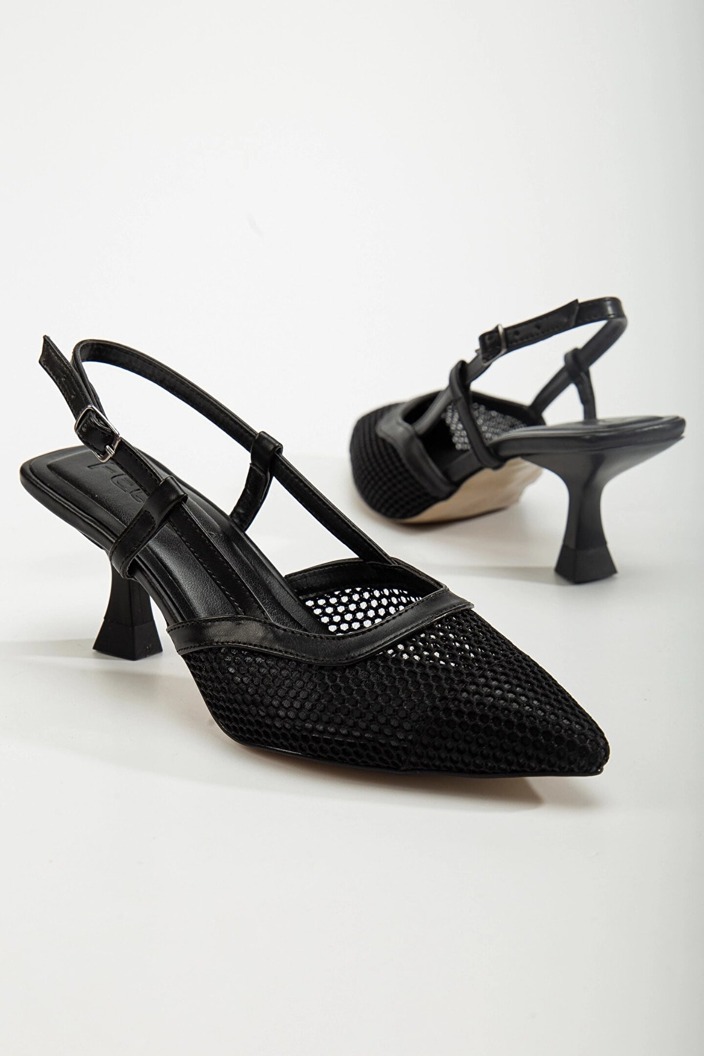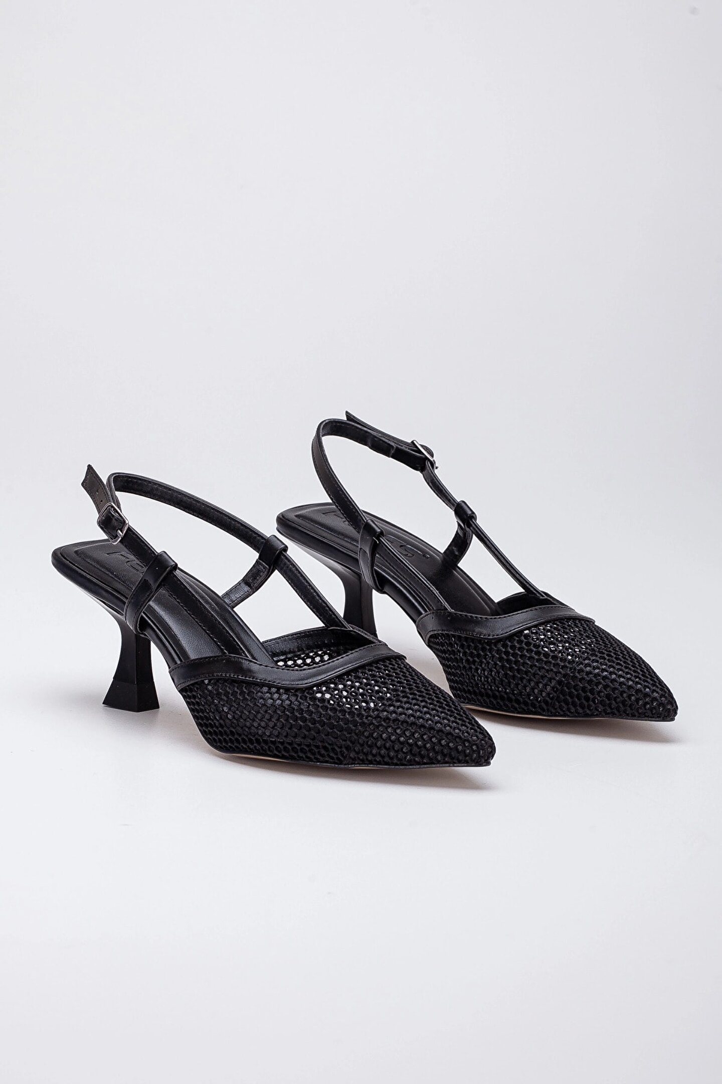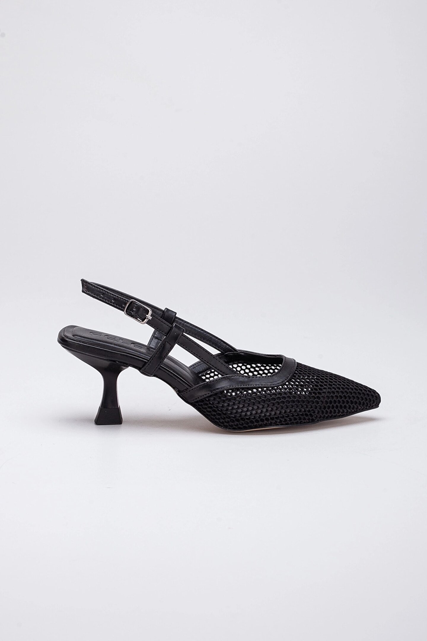 Zarif dokuma kumaş yapısı ile dikkat çeken siyah fileli topuklu ayakkabı, şıklığınızı tamamlar; Şık ve gece ortamları için ideal bir seçim olan bu ayakkabı, zarafetiyle göz kamaştırır; Sade ve düz deseniyle her türlü kıyafetle kolayca uyum sağlar, zamansız bir stil sunar; Orta topuk boyu (5; 9 cm) ile hem rahatlık hem de şık bir duruş sağlar; gün boyu konforunuzdan ödün vermezsiniz; İnce topuk tasarımı sayesinde feminen bir siluet çizerken, dengeli adımlar atmanız için idealdir;