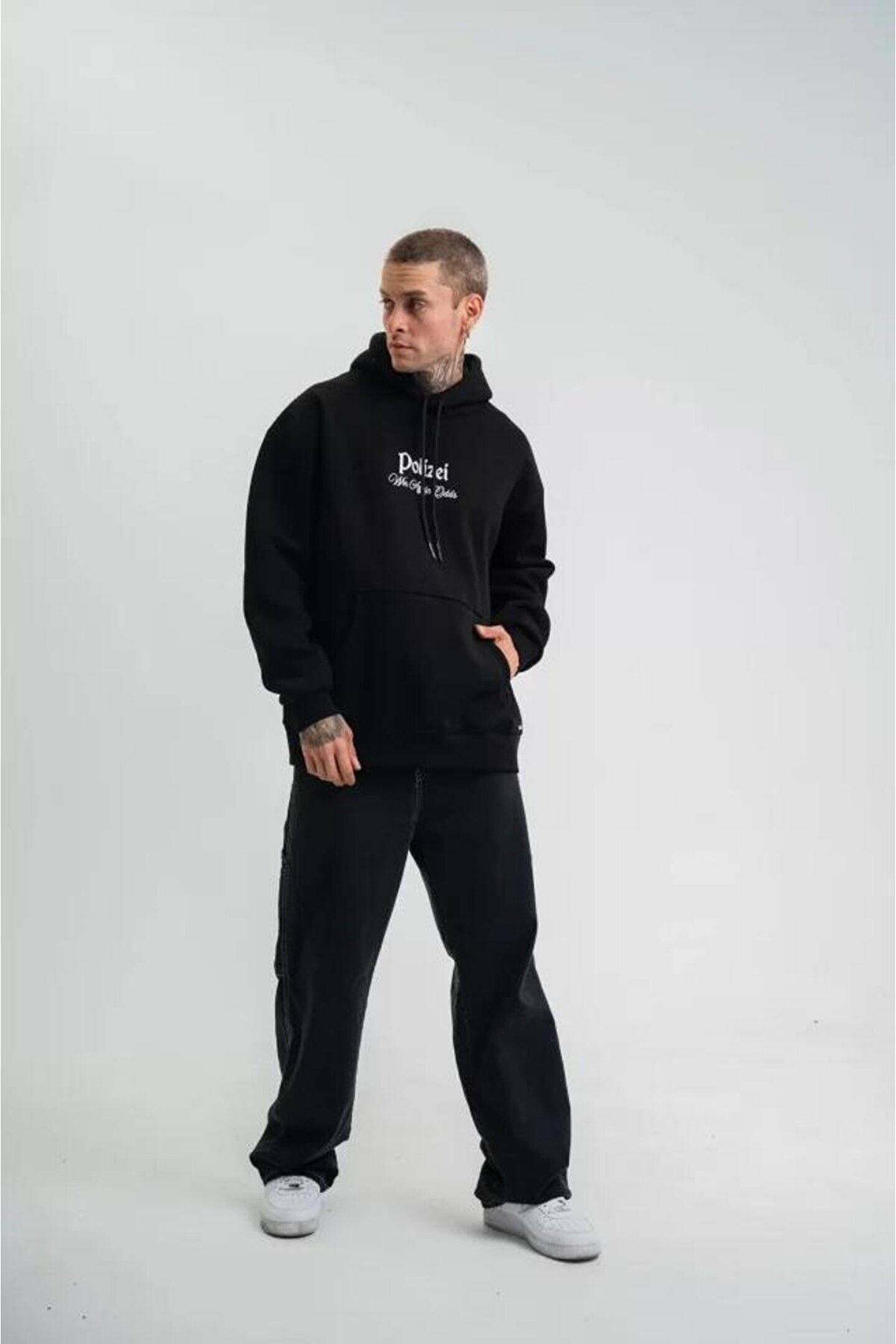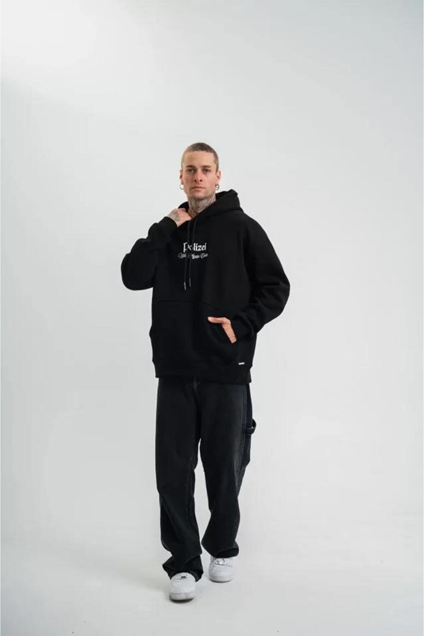 LUSHİOWEAR POLIZEI Premium Kalite Kapşonlu Dijital Patchli SweatShirt - Siyah