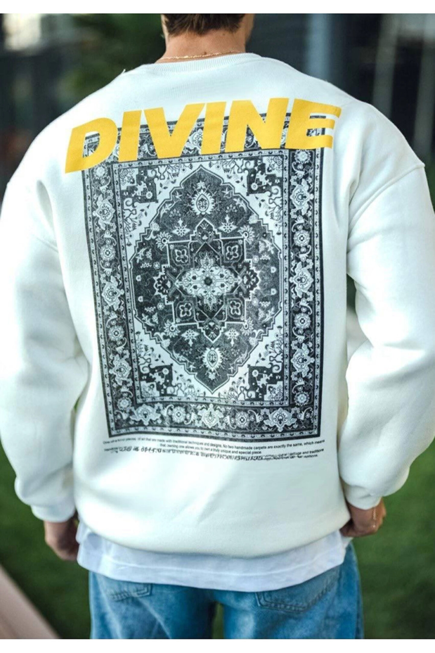 luz&pos Kışlık Bisiklet Yaka Baskılı SweatShirt - Beyaz
