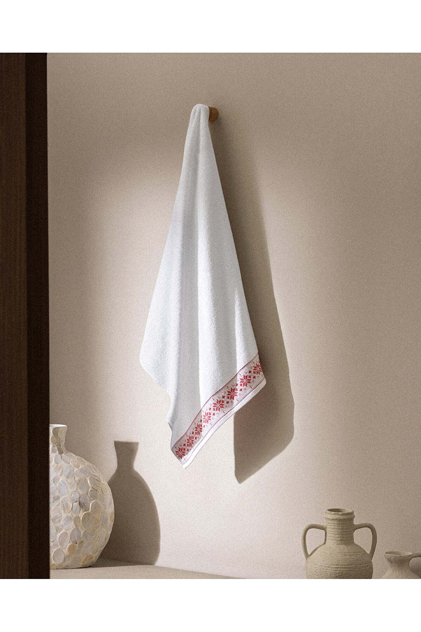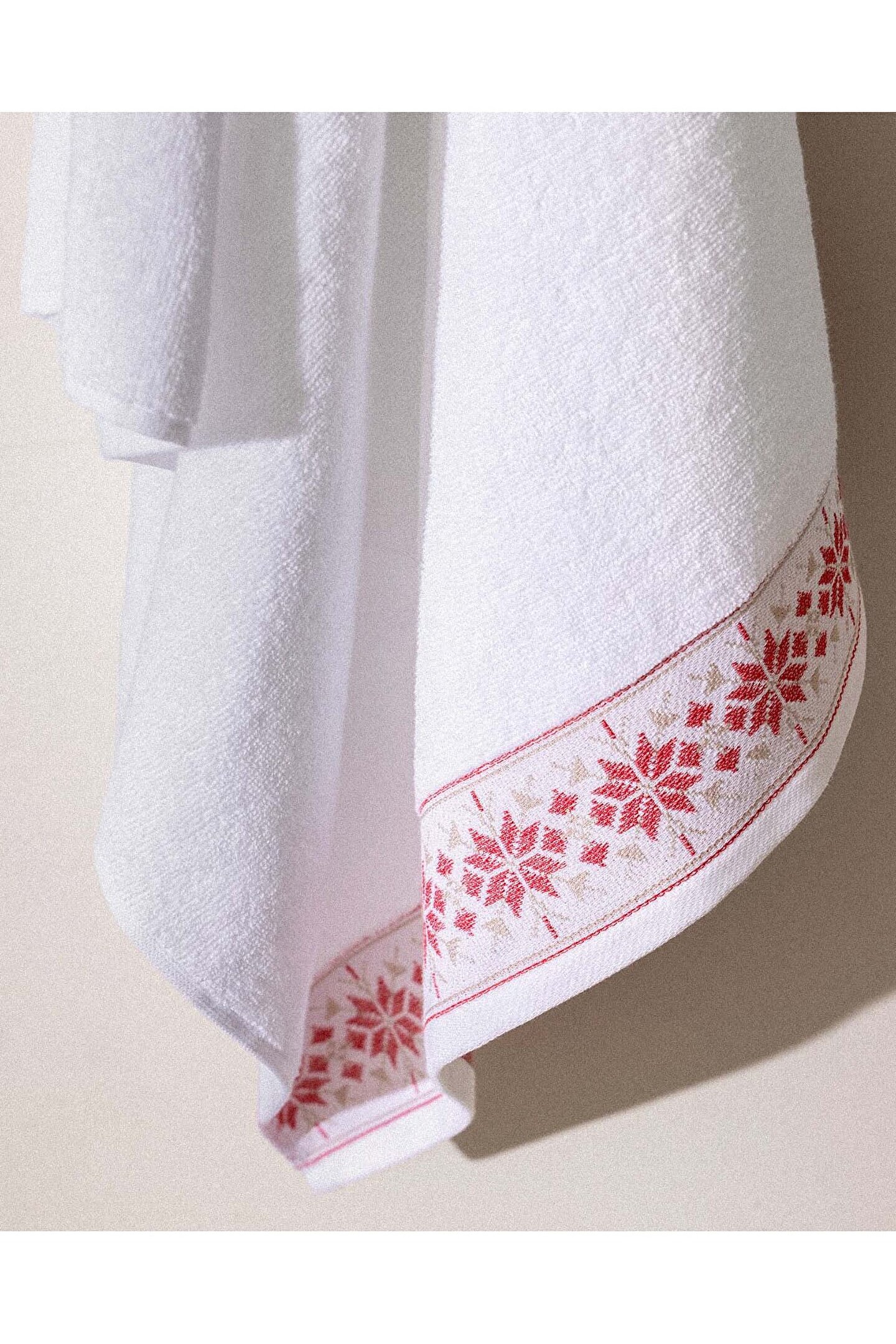 Caresse %100 Pamuk Banyo Havlusu - Beyaz/Kırmızı - 70x140 cm