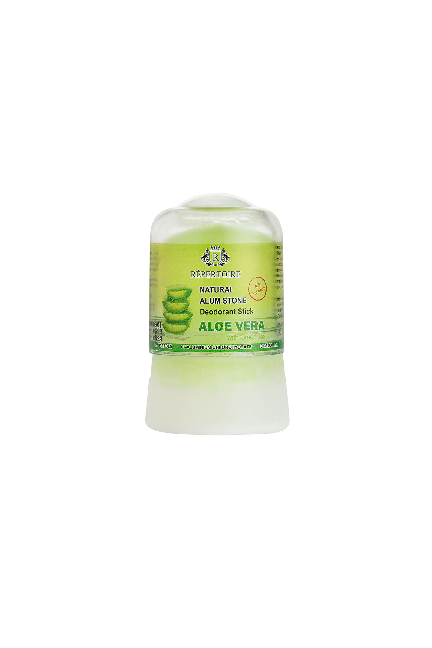 Ürün Açıklaması : RÉPERTOIRE Alum Taşı Bazlı Kristal Deodorant 45 gr Répertoire Alum taşı doğal tuzdan oluşan bir roll; on deodoranttır; Alkol ve alüminyum klorohidrat içermez; Aloe vera ve yeşil çay ekstresi içerir; Gözenekleri tıkamadan ter kokusu oluşumunu önler; Giysilerde leke yapmaz; Kullanım Talimatı: Temiz cilde suyla ıslatarak koltuk altına uygulayınız; Teknik Özellikler : Koku Notası: Aloe Vera, Yeşil çay Ölçü: 45 gr Üretim Yeri: Tayland Paket İçeriği: Deodorant : 1 Adet;