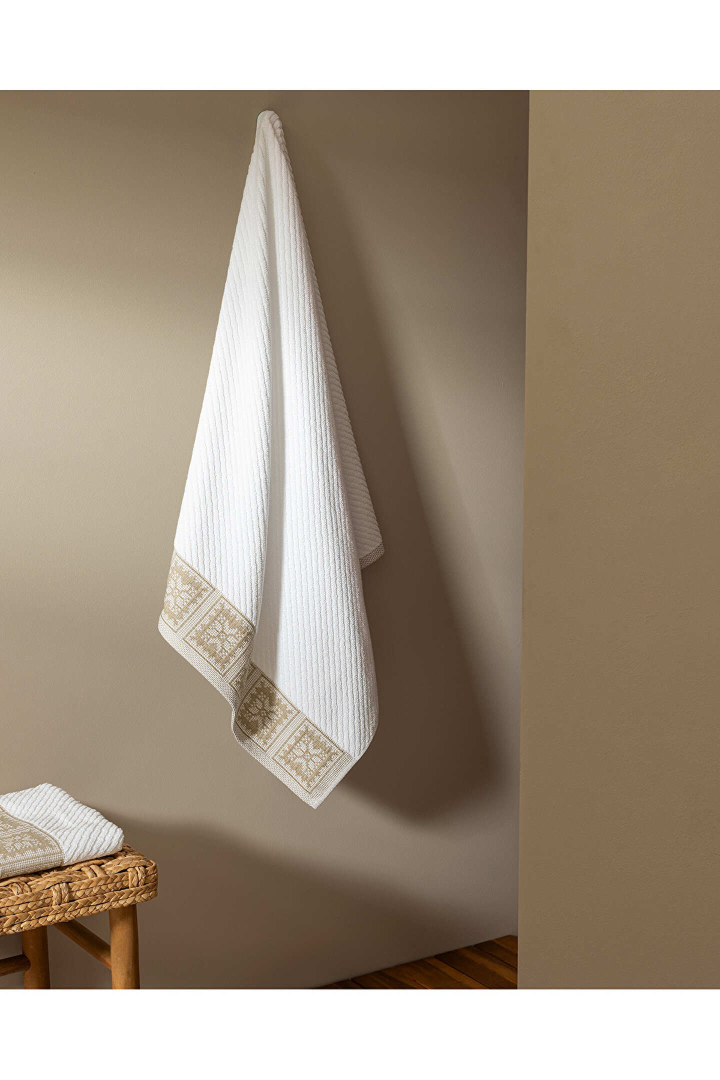 Zeste %100 Pamuk Banyo Havlusu - Beyaz/Bej