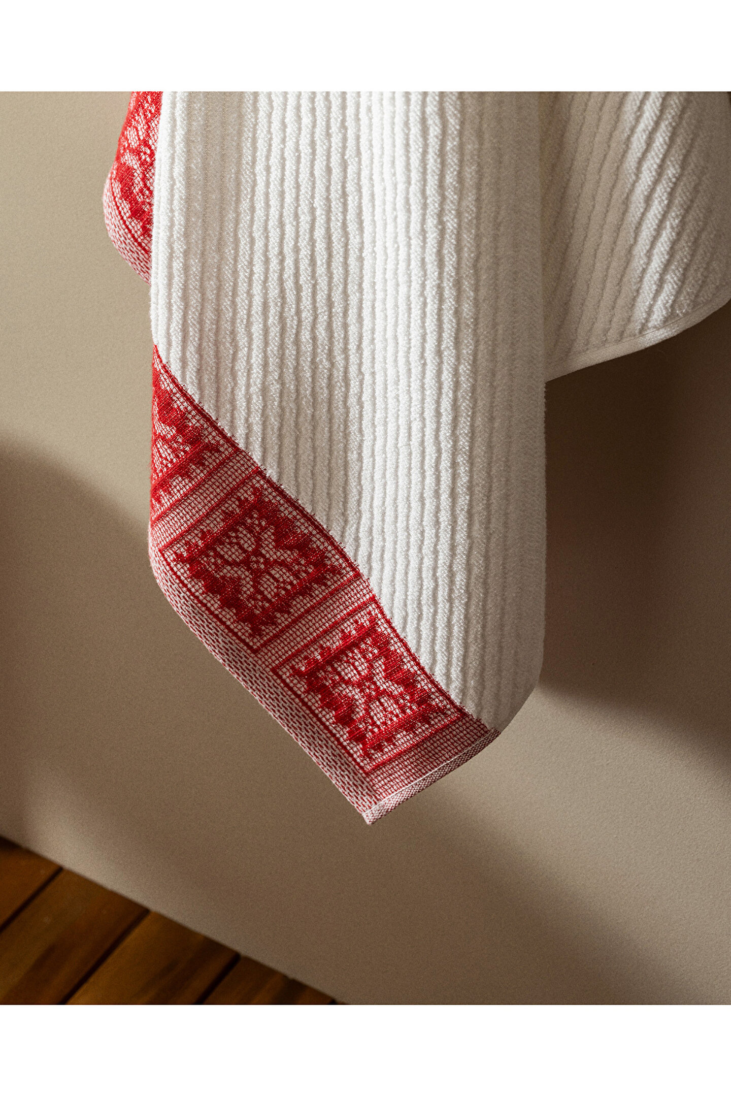 Zeste %100 Pamuk Banyo Havlusu - Beyaz/Kırmızı