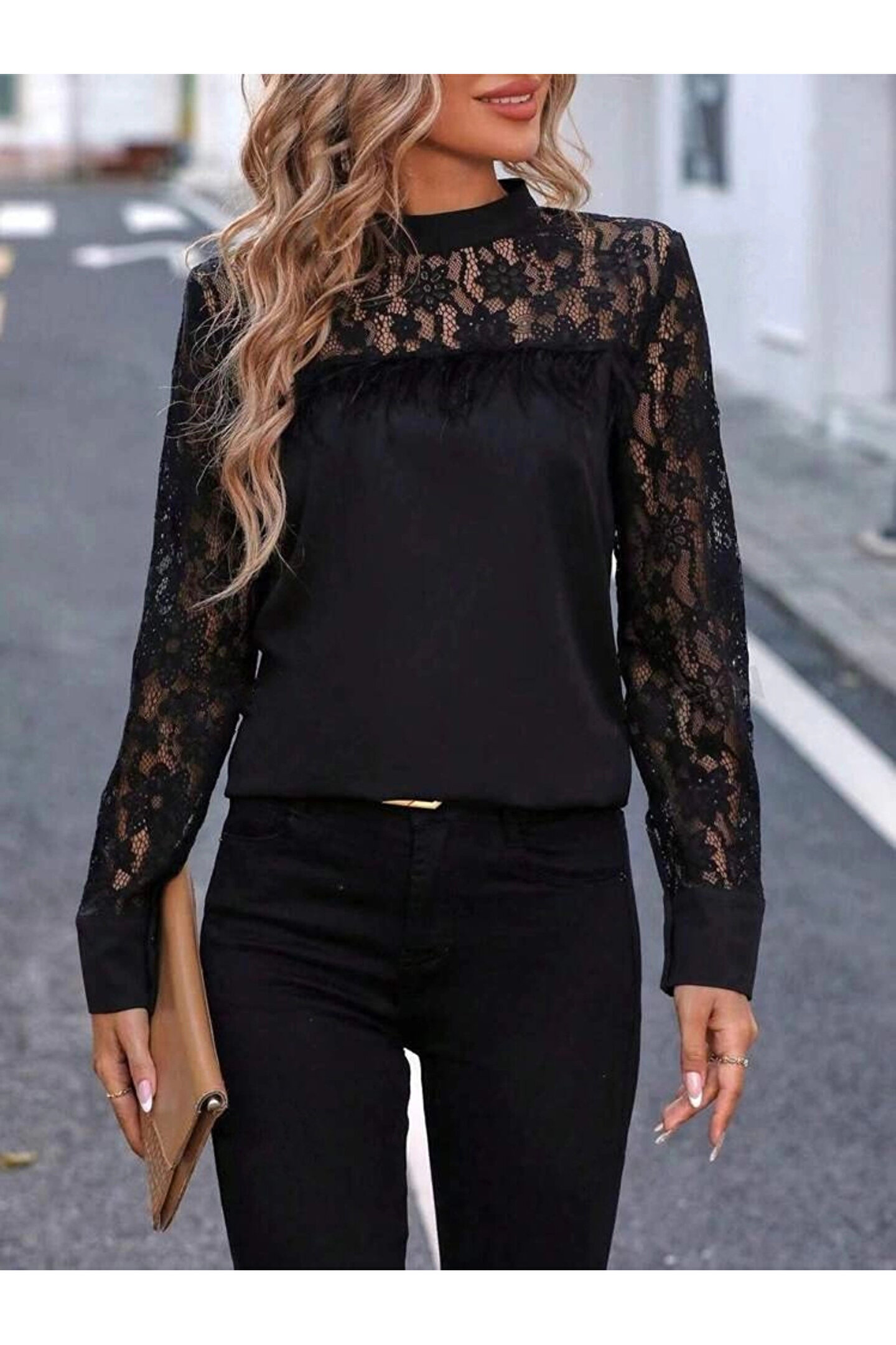 MADAMNİZ Kadın Uzun Kollu Yarı Balıkçı Yaka Dantelli Sandy Bluz