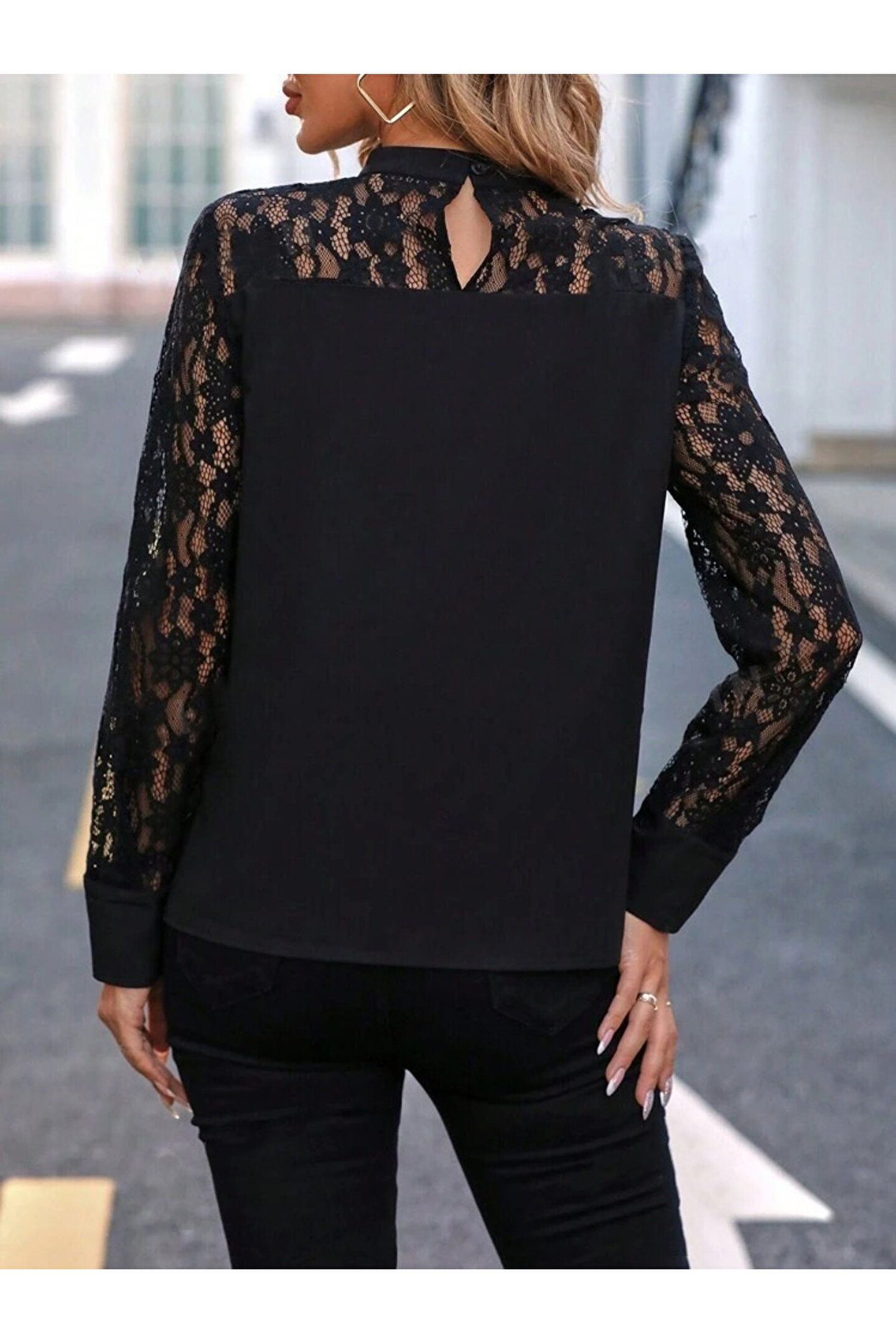 MADAMNİZ MODAVERA Kadın Uzun Kollu Yarı Balıkçı Yaka Dantelli Sandy Bluz