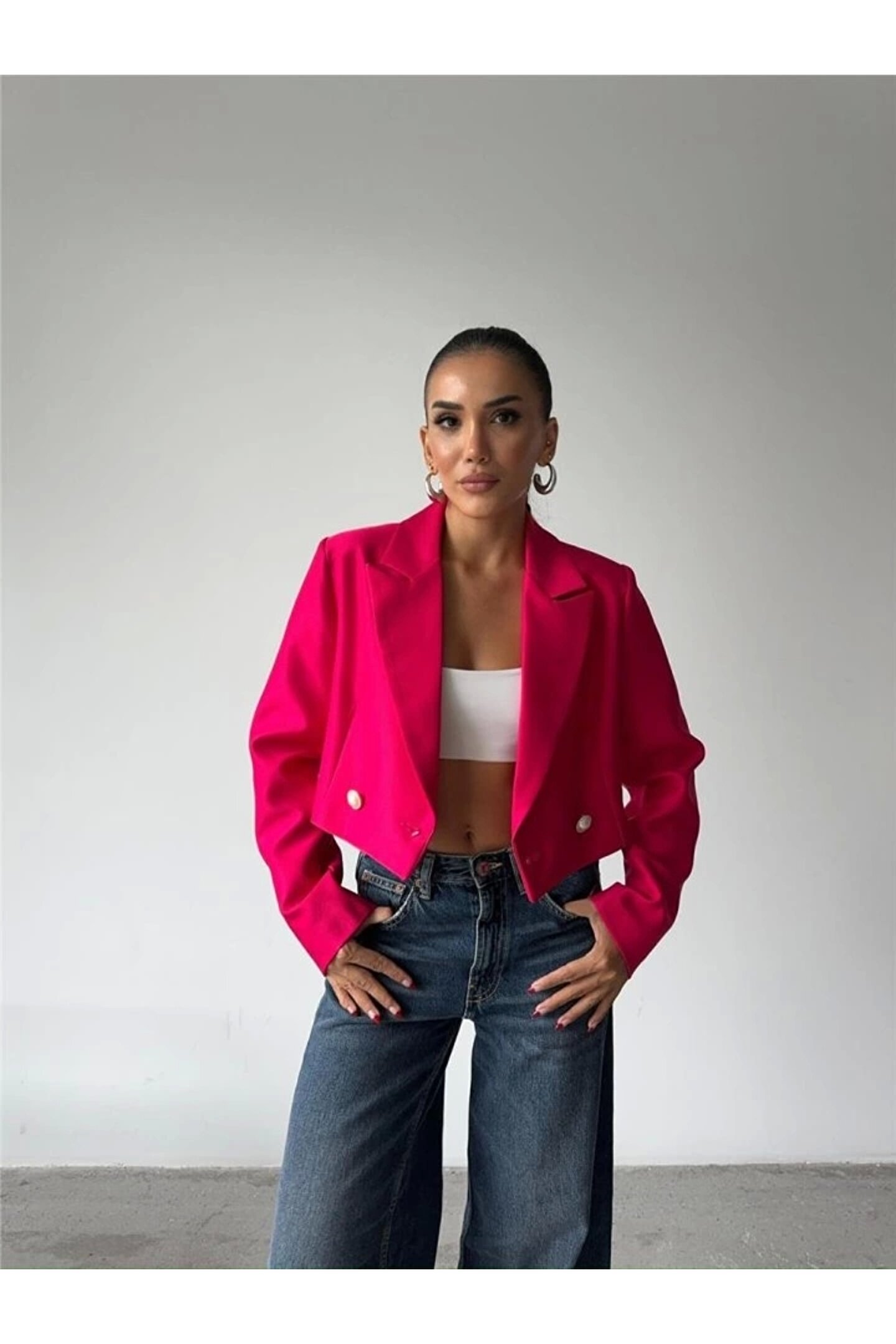 magic special EKŞİOĞLU GLOBAL ARKASI İNCİ DÜĞME DETAYLI CROP CEKET - Fuşya