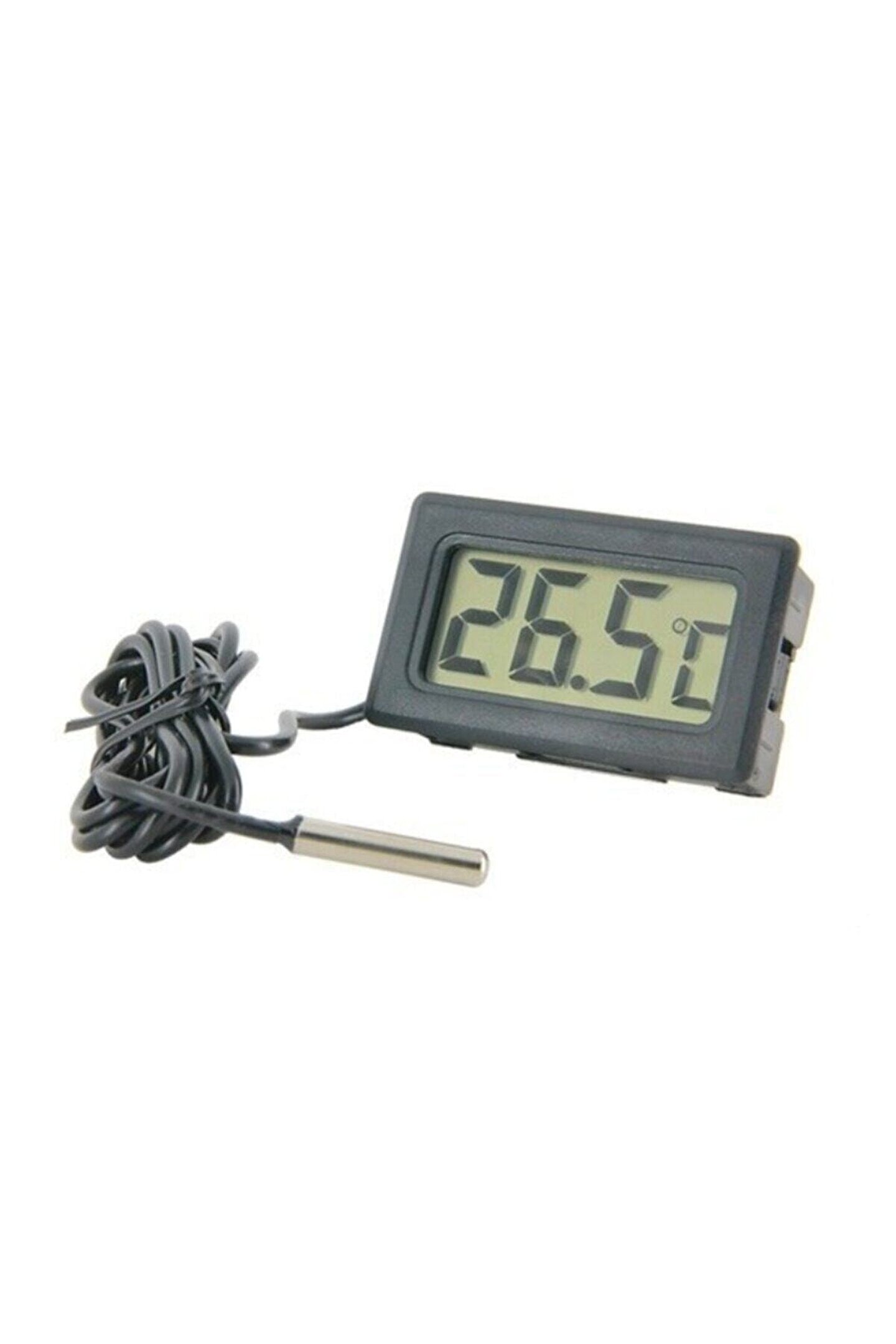 -50°C ile +100°C arasında sıcaklıkları ölçmek için kullanabileceğiniz su geçirmez uca sahip termometredir. Özellikler: Ölçüm aralığı: -50°C ~ 99°C Hassasiyet ± 1 ° c (-30°c ~ +40°c) Yalnızca °C cinsinden ölçüm yapar Boyutlar: 48 x 28 x 5mm Ekran boyutu: 36 x 16mm Kablo uzunluğu: 1 Metre 2 adet saat pili ile çalışır (LR44/AG13, 1.5V) Piller Dahildir Paket İçeriği: 1 x Dijital LCD termometre;
