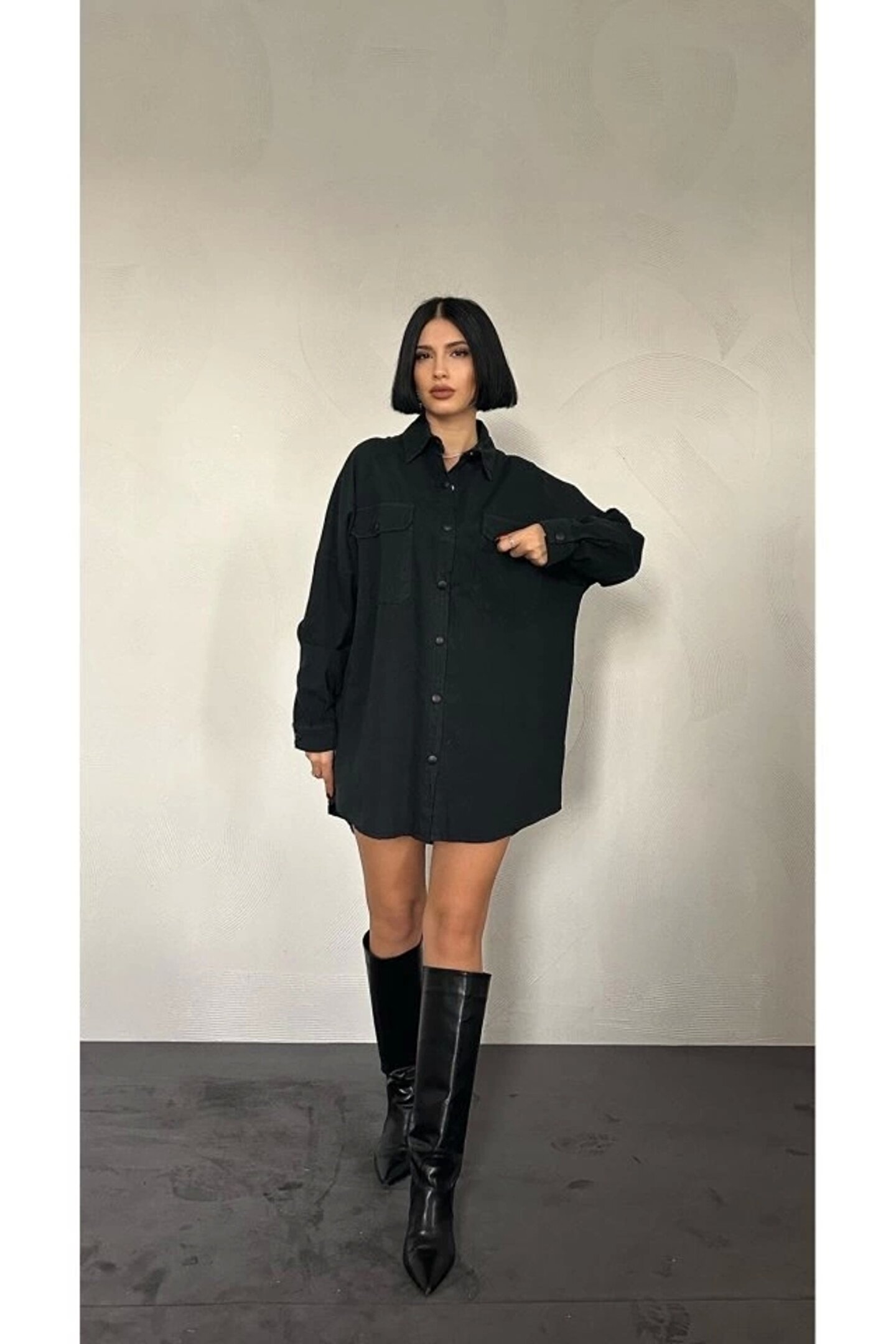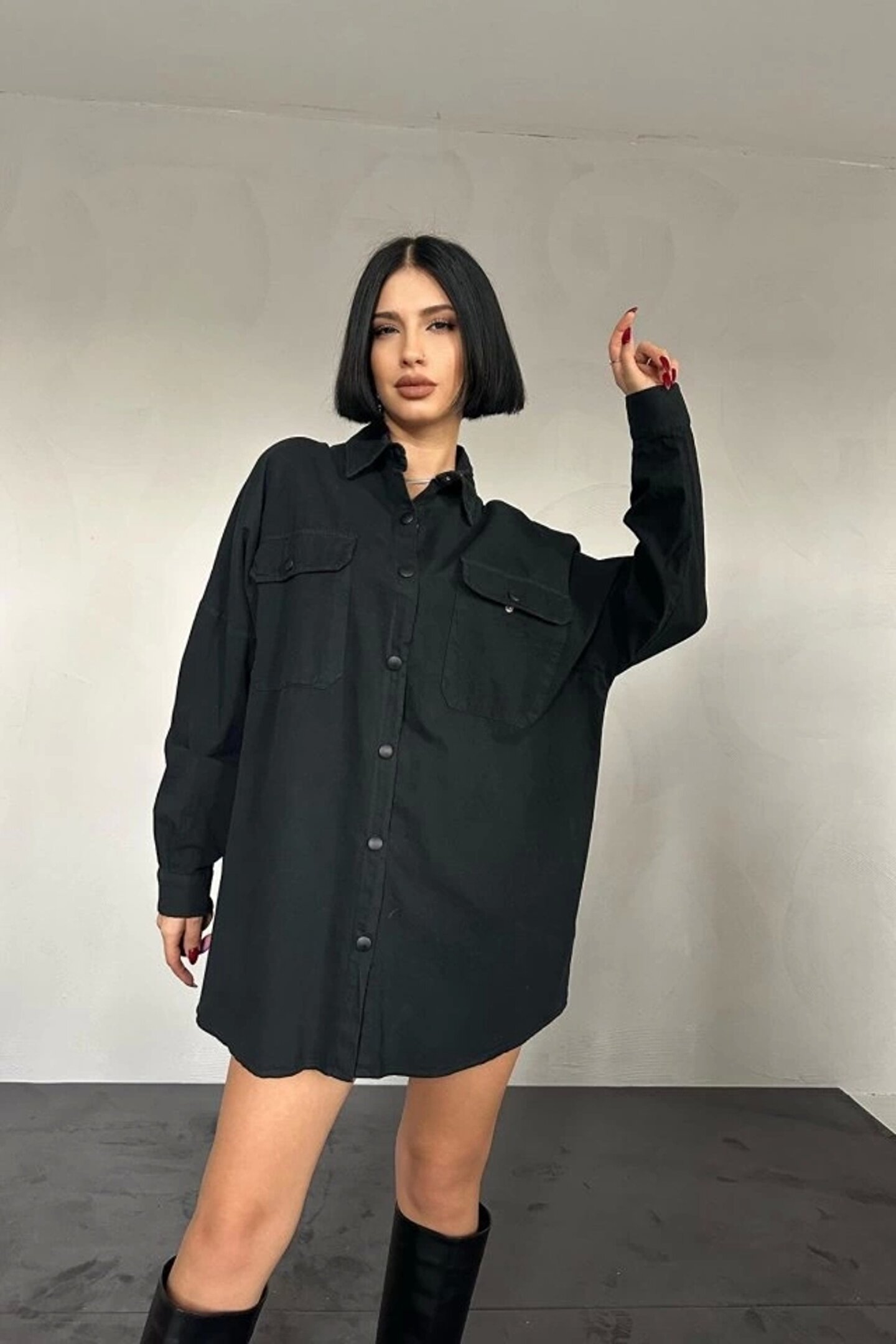 Siyah Çift Cep Kapaklı Çıtçıtlı Gömlek