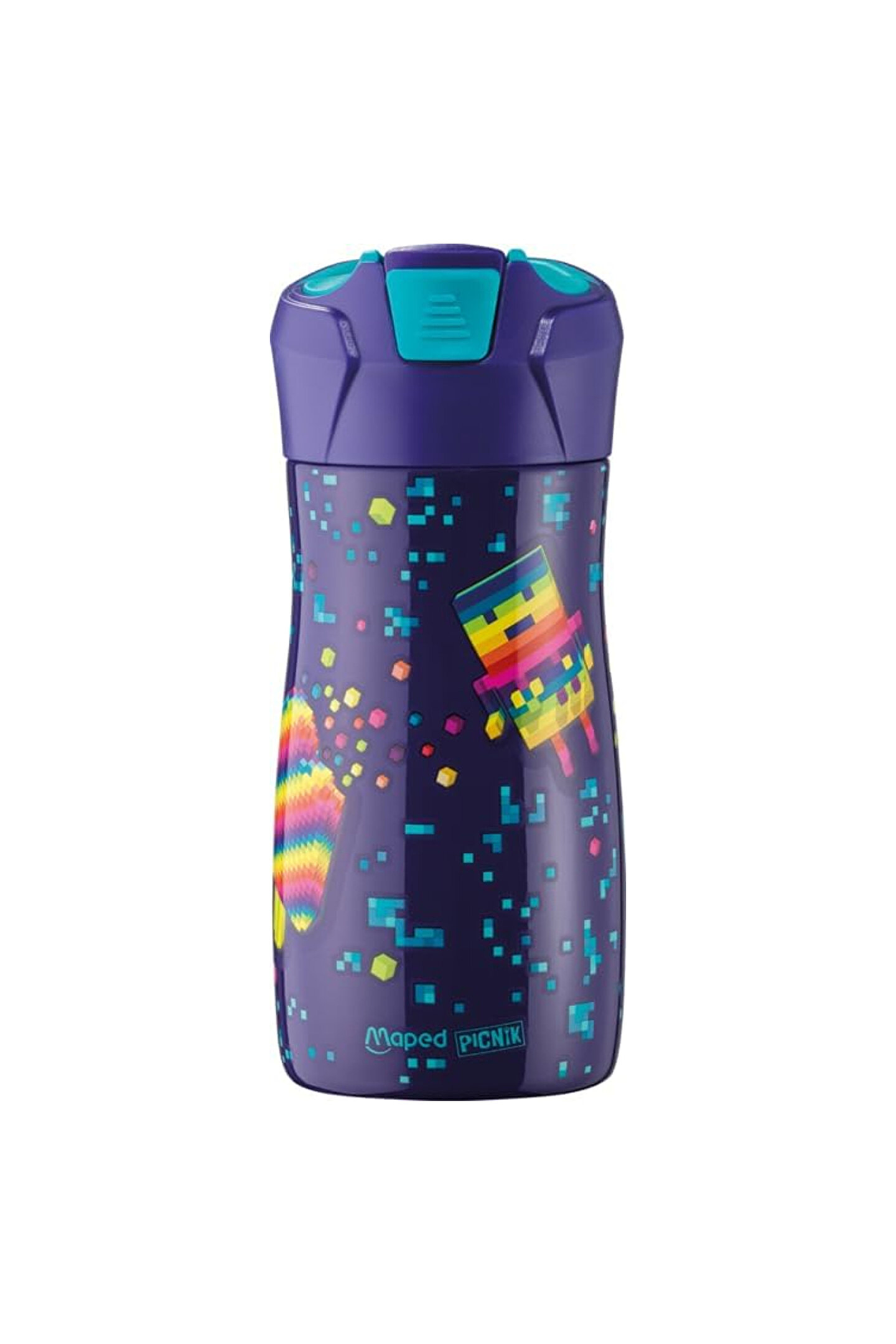 Maped Picnik 430 Ml Paslanmaz Çelik Matara Suluk Pixel 871298 3154148712985 Picnik Concept Kids 430 ml Pixel paslanmaz çelik şişe.; Paslanmaz çelikten yapılmış saplı su şişesi/şişe.; Hem çocuklar hem de yetişkinler için hafif, kullanışlı ve rahat kullanım.; Bir tutamak ile donatılmıştır.; Dayanıklı ve hasara karşı dayanıklıdır.; Okulda, anaokulunda, gezilerde, pikniklerde, seyahatlerde ve yürüyüşlerde su ve içecekleri saklamak için mükemmeldir.; Silikon contalı sıkı kapak, sıvıların şişeden sızmasını önler.; Tek elle kolay ve hızlı açılır.; Kokuları absorbe etmez.; Temizlemesi kolay: Şişe elle yıkanmalıdır, ancak şişenin plastik üst kısmı da bulaşık makinesinde yıkanabilir.; Şişedeki geniş ağız, iç kısmına erişimi kolaylaştırır, böylece şişe elde iyice yıkanabilir.; Kaynatmayınız.; Dış mekanlarda kullanılan boyalar toksik değildir.; Teknik parametreler: Kapasite 430 ml BPA, PVC veya ftalat içermez Malzeme: INOX 304, 5-PP polipropilen sağlığımız açısından en güvenli plastiklerden biri olarak kabul edilir.; lacivert