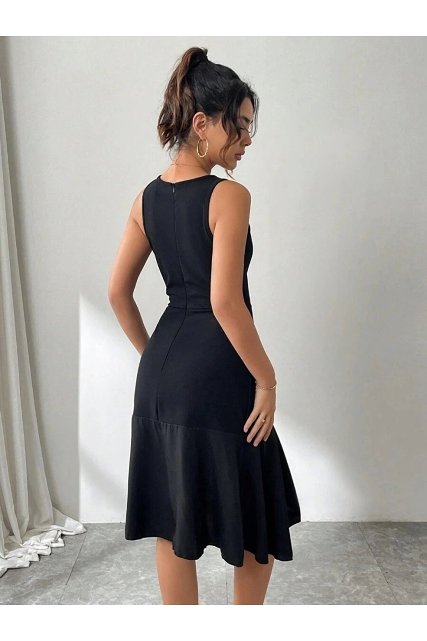 Kadın Askılı Bisiklet Yaka önden Fırfırlı Kısa Ithal Krep Elbise hediye paketi yapılabilir