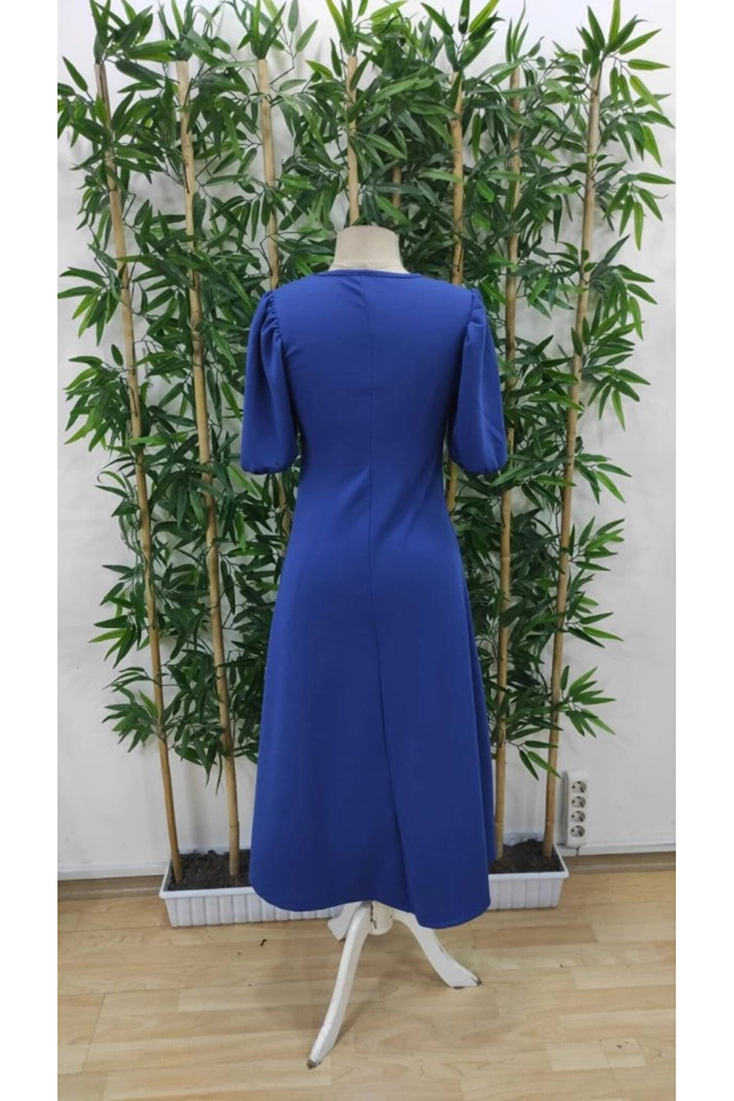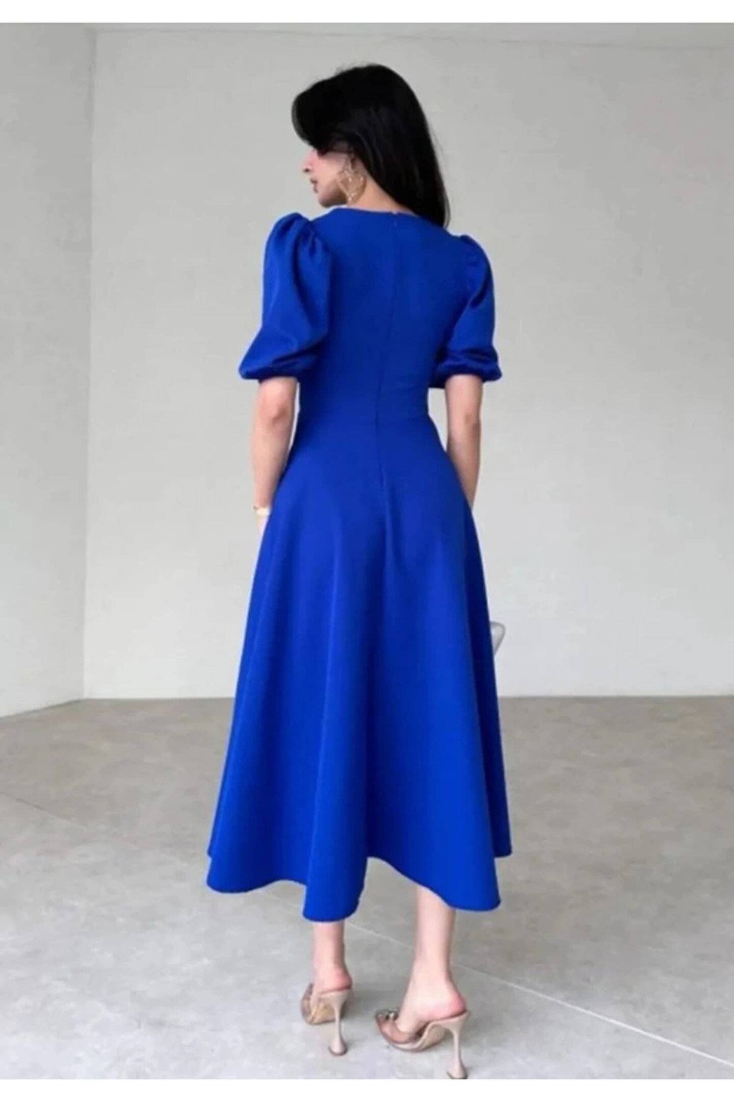 Kadın Kısa Balon Kollu Bisiklet Yaka Geniş Kesim Janjan Krep Elbise