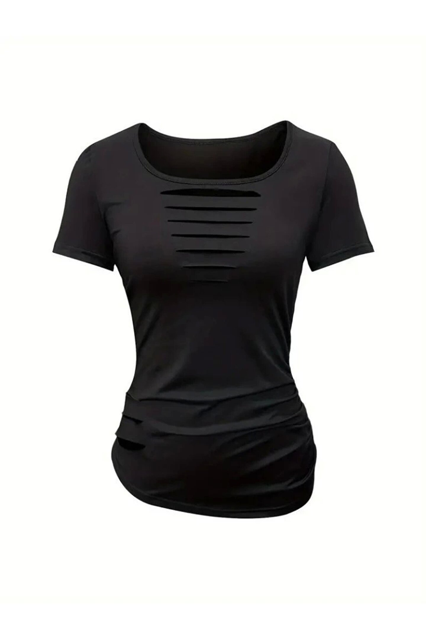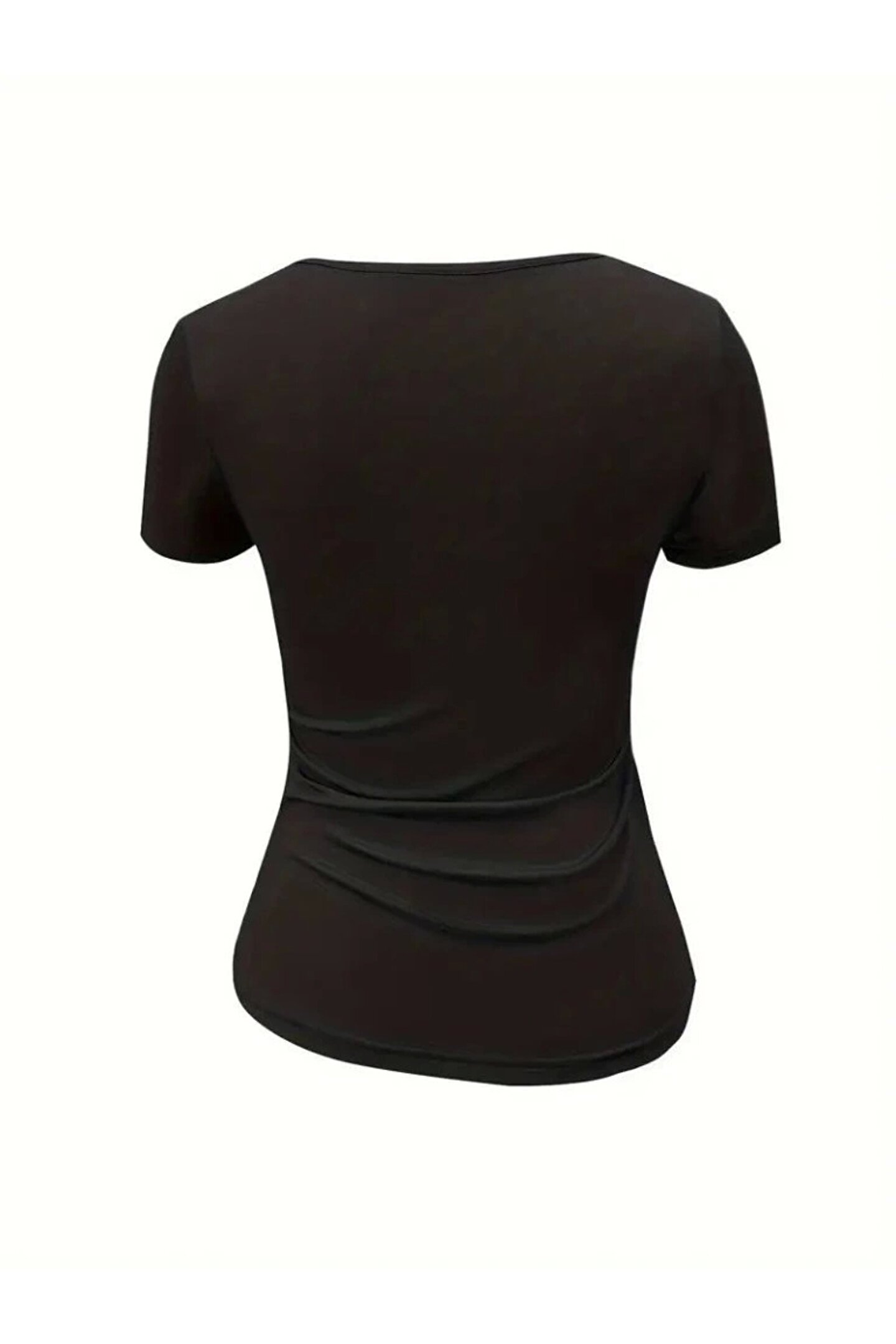 Kadın Kısa Kollu Yakası Açık Lazer Kesik Detaylı Viskon Bluz
