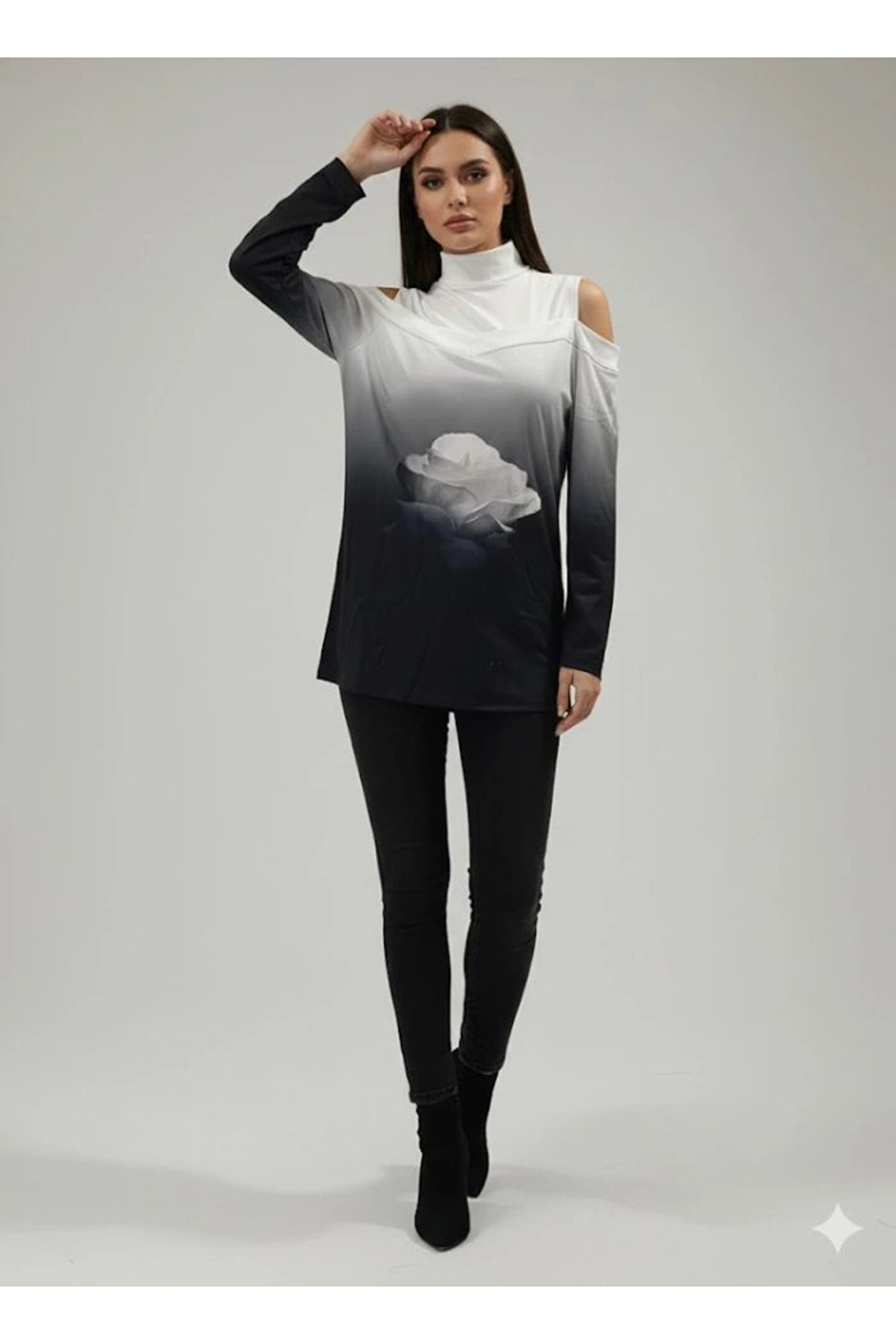 Kadın Uzun Kollu Balıkçı Yaka Omuz Dekoltesi Detaylı Bluz
