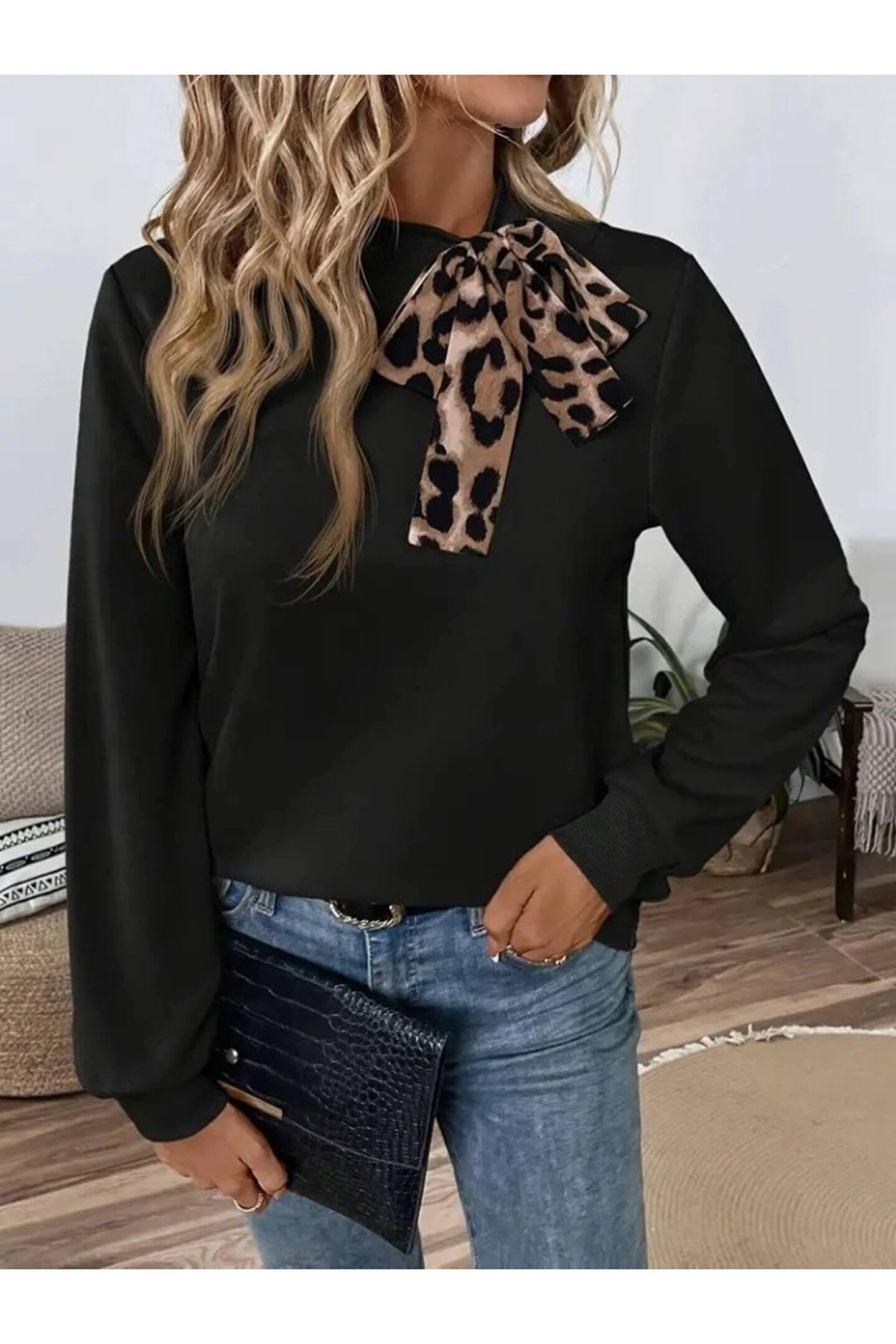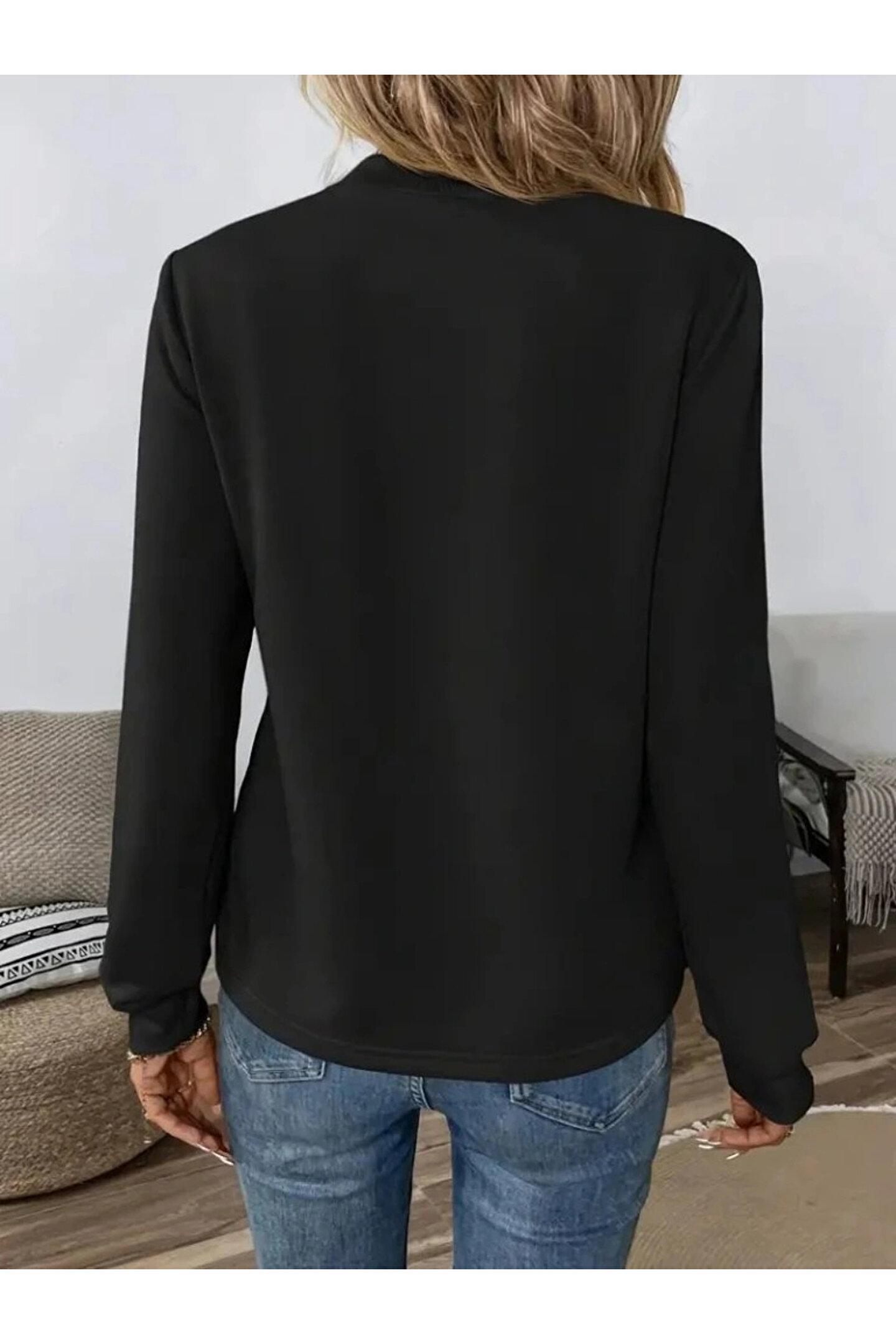 Kadın Uzun Kollu Yakadan Bağlamalı Viskon Iki Iplik Bluz