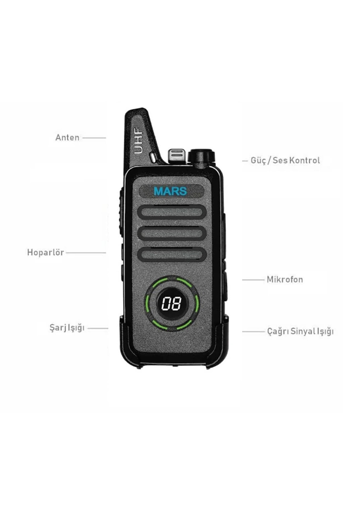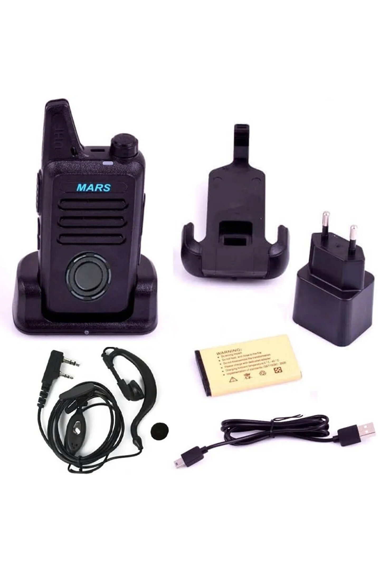 1 adet el telsizi, 1 adet batarya, 1 adet şarj aleti,1 adet şarj kablosu, 1 adet kemer/cep/bel aparatı, fatura.