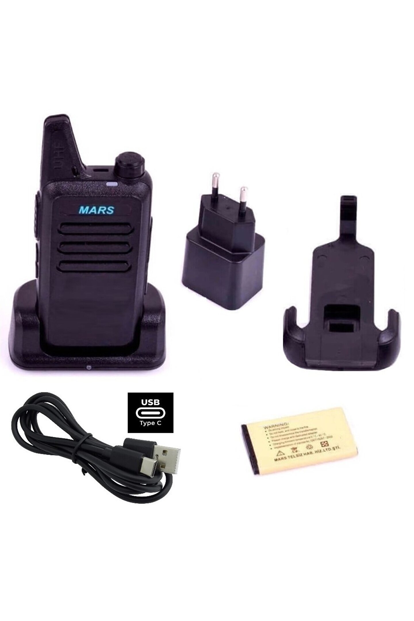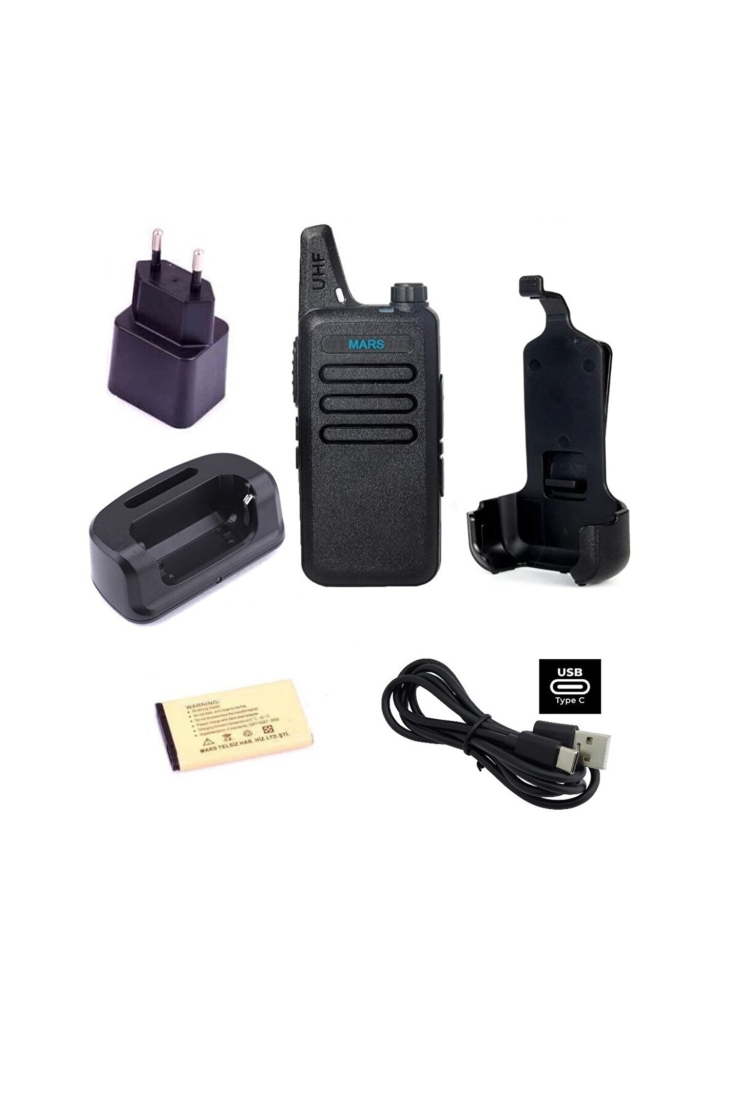 - 16 Kanal Kapasitesi (Bilgisayar ile Programlanabilir) - 1500 mAh Li-İon Batarya (Minimum 1 Gün Kullanım Süresi) - IP54 Yağmur / Toz ve Darbeye Dayanıklı Lisanssız El Telsizi. ; - Çıkış Gücü : 0,5 Watt. ; - Anten Çıkış Koruma Özelliği - Ses Çıkış Gücü 1 Watt - Vox Eller Serbest Mod - Tarama özelliği ile kanallar arası hızlı geçiş. ; - CTCSS ve DCS Ton Şifreleme Özelliği - FM Radyo Özelliği;