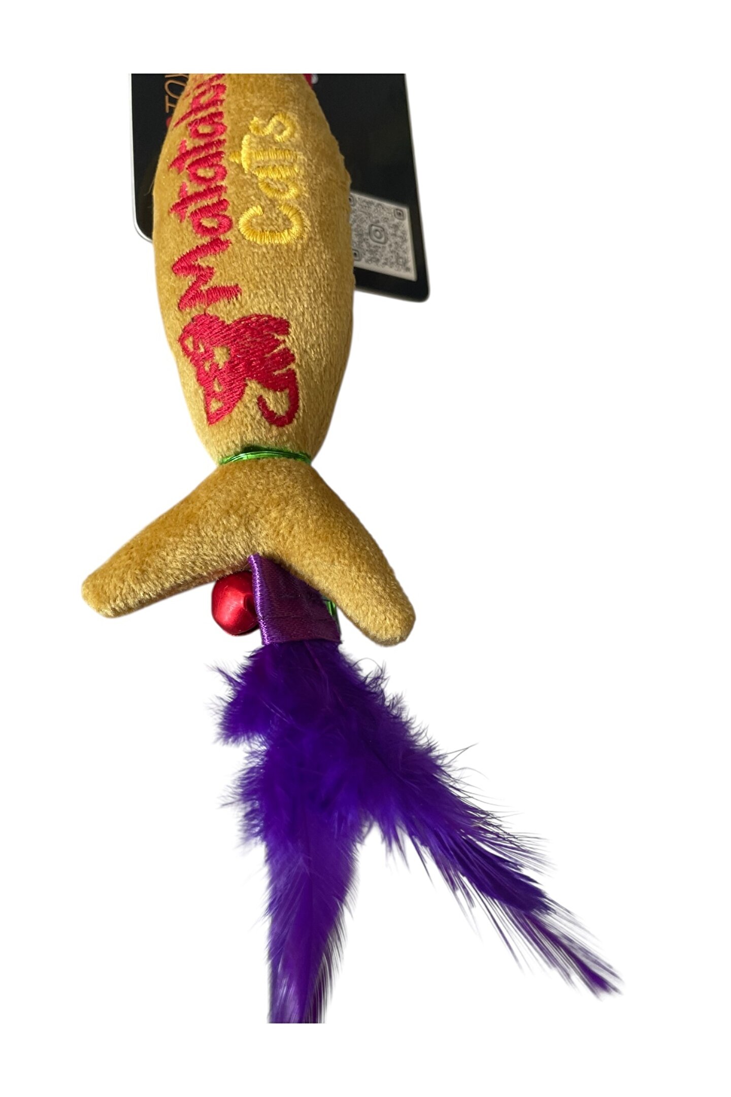 Matatabi Cats Jr; Fish Sesli, Tüylü Peluş Kedi Oltası 50 Cm Kedi Oyuncağı(Kedi Nanesi/Otu İçermez)AL SAPLI Alüminyumdan oluşan kaliteli sapı, ucunda Matatabi Jr; Fish Kedi oyuncağı, tüy ve çıngırağı ile kedinizle birlikte zaman geçirmeye bayılacaksınız; Sadece sizin için değil kediniz için de büyük keyif olacaktır; Boy 42-43 cm(sap) 1 adet;