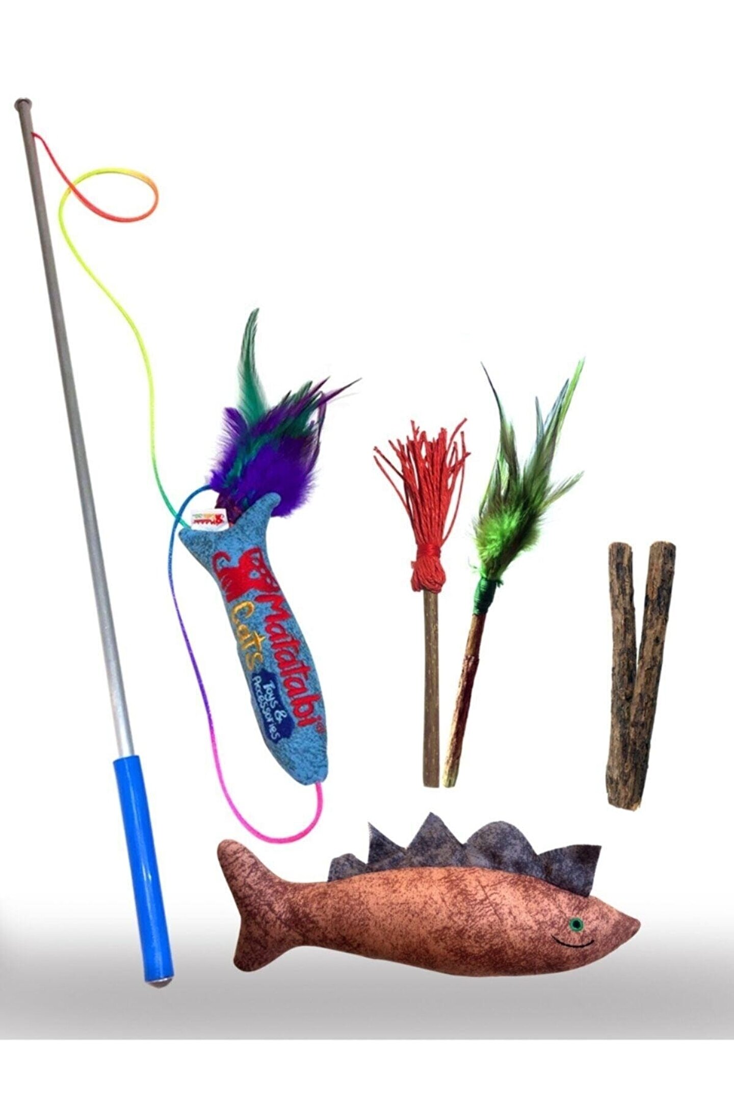 Matatabi cats premium set kedi oltası, çiğneme çubuğu, sesli peluş kedi oyuncağı 4'lü set Yeni nesil kedi oyuncakları!!!! matatabi cats yeni nesil oyuncaklarını herkes tanısın, kullansın ...Bu setle matatabi dünyasına en kaliteli ,en farklı oyuncaklarla girin istedik... ; Tüm ürünlerimiz en kaliteli malzemeler ile ev kadınlarımızın ellerinde şekilleniyor. ; Matatabi süpürge+tüylü çubuk Matatabi jumbo stick 2 ad Matatabi alüminyum saplı jr fish olta Matatabi spino(istenirse mesaj yolu ile büyük oyuncak tercihi belirtebilirsiniz);