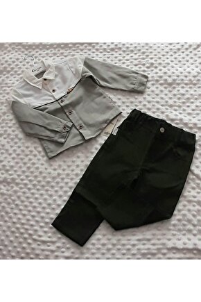 Mavera Beyaz-fıstık Yeşili Gömlek Ve Haki Yeşil Pantolonlu 2li Takım