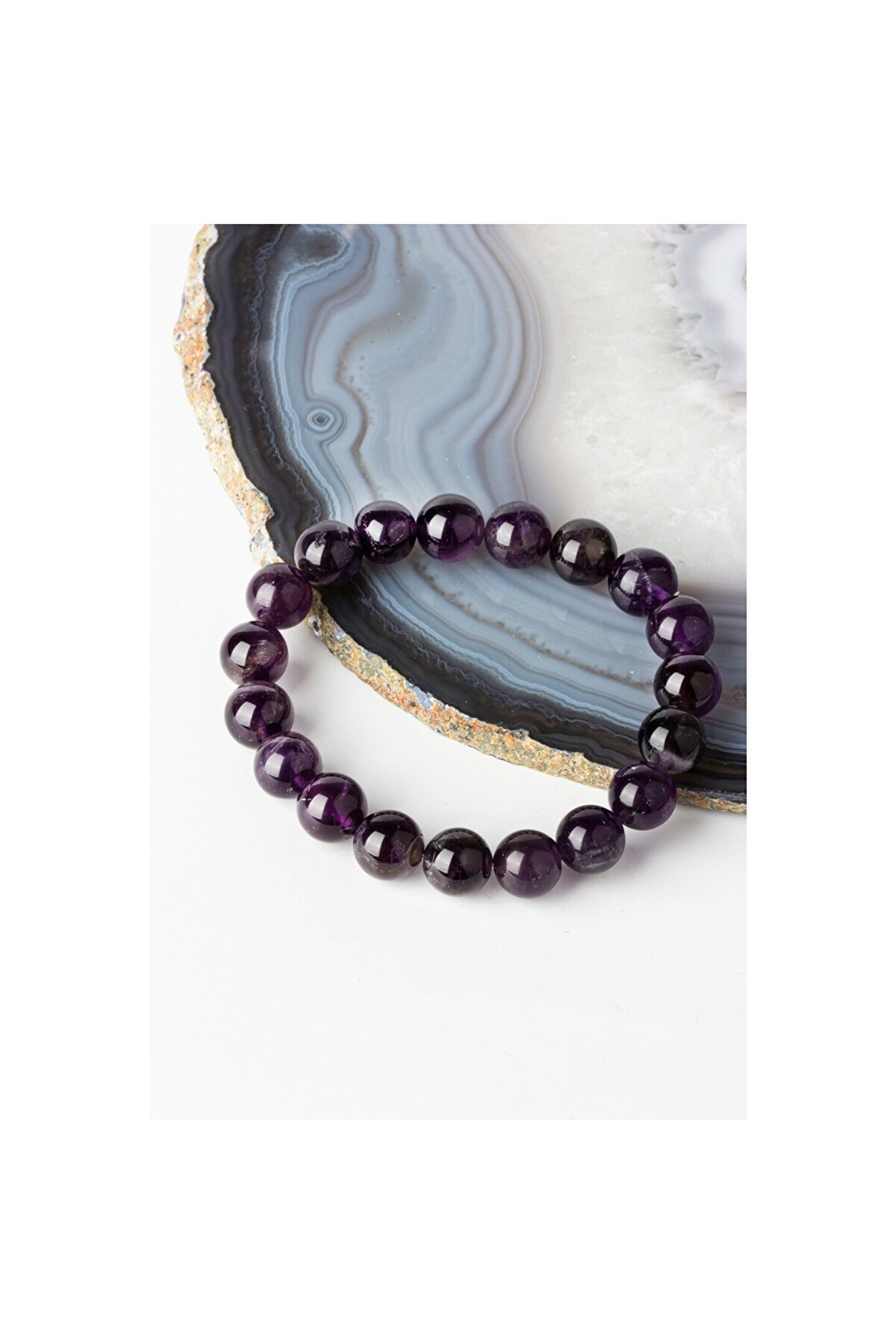 Ametist Doğal Taş Bileklik 10 mm Küre Kesim Ametist taşı, dünyadaki birçok yerde çıkarılmaktadır. ; En büyük ametist madenleri Brezilya, Uruguay, Rusya, Hindistan, Madagaskar, Zambiya ve Tanzanya'da bulunmaktadır. ; Türkiye'de de Balıkesir, Yozgat ve Ordu'da ametist yatakları bulunmaktadır. ; Ametist, kuvars ailesinden bir mineraldir ve mor renklidir. ; Mor rengi, ametiste rengini veren manganez minerali içeriğinden kaynaklanmaktadır. ; Ametist, genellikle prizmatik kristaller halinde bulunur. ; Ametist taşı, yüzyıllardır mücevher olarak kullanılmaktadır. ; Ayrıca, ametist taşının şifa verici özellikleri olduğuna inanılmaktadır. ; Ametist taşı, stresi azaltmaya, uyku kalitesini iyileştirmeye ve baş ağrılarını hafifletmeye yardımcı olduğu söylenmektedir.;