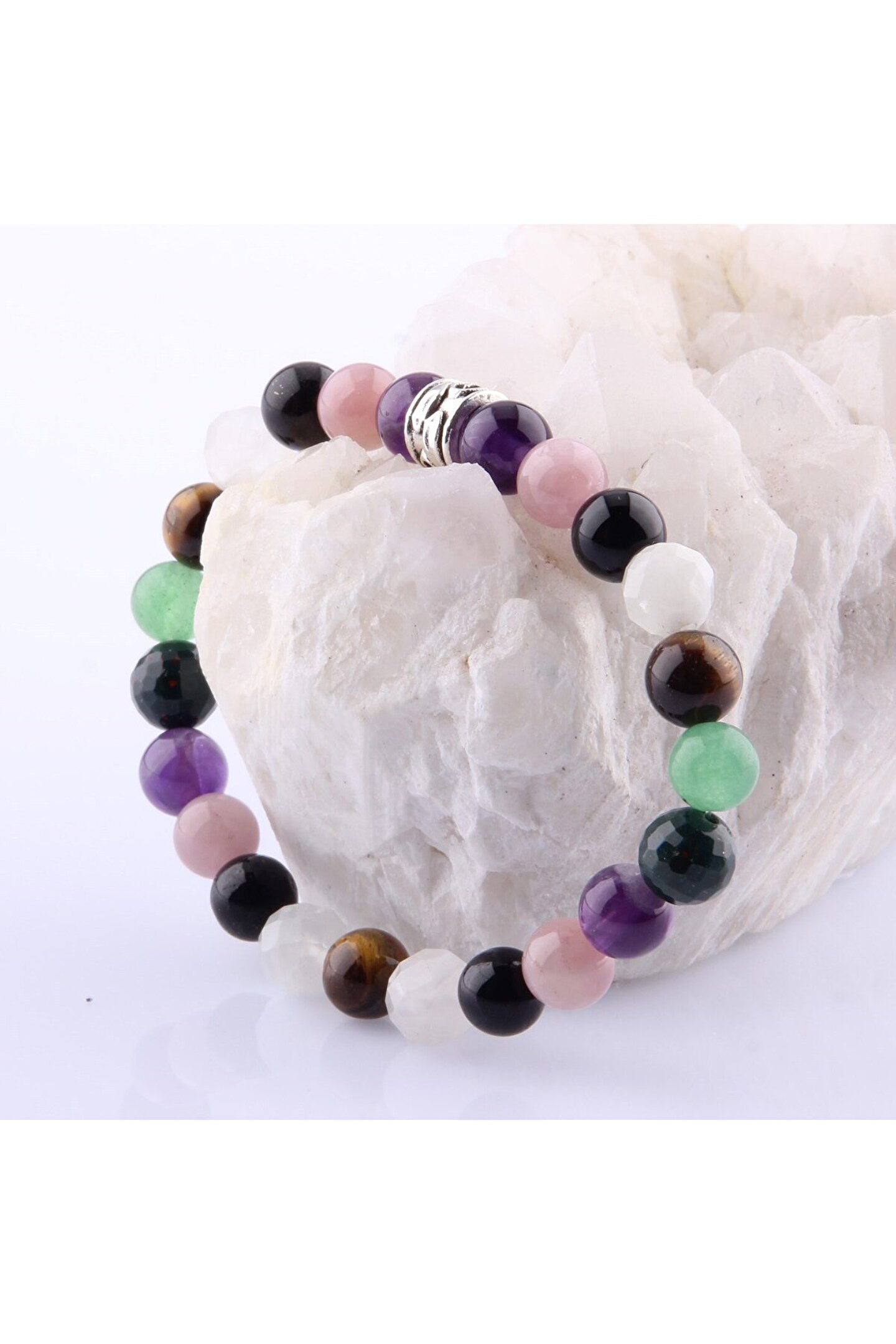 Mavera Doğaltaş Ametist P.Kuvars Obsidyen Ay Taşı Kaplan Gözü Aventurin Kan Taşı 8 mm Doğal Taş Bileklik