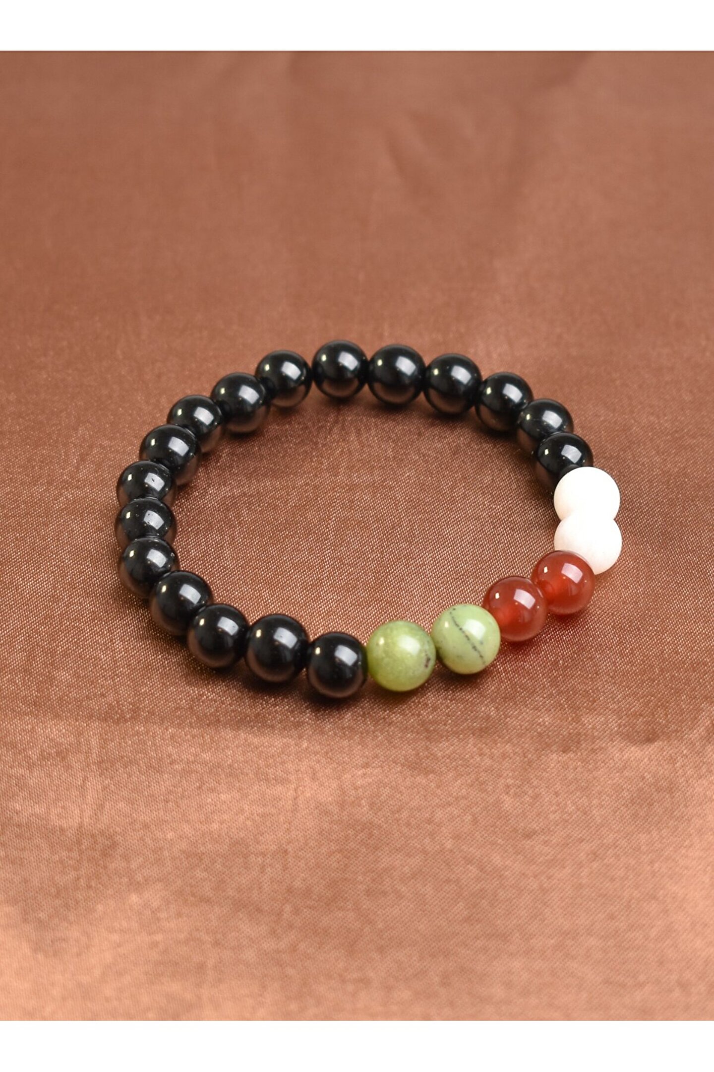 Filistin'in eşsiz doğal taşlarından üretilmiş, her biri benzersiz ve özgün bir tasarım sunar;; Yeşim, akik, obsidyen ve ay taşı gibi değerli taşların birleşimiyle zenginleştirilmiş, göz alıcı bir görünüm sağlar;; 8 mm kalınlığındaki bileklik, hem şıklığı hem de rahatlığı bir arada sunarak günlük kullanım için idealdir;; Doğal taş materyali sayesinde her bileklik, doğanın saf güzelliğini ve enerjisini yansıtır;;