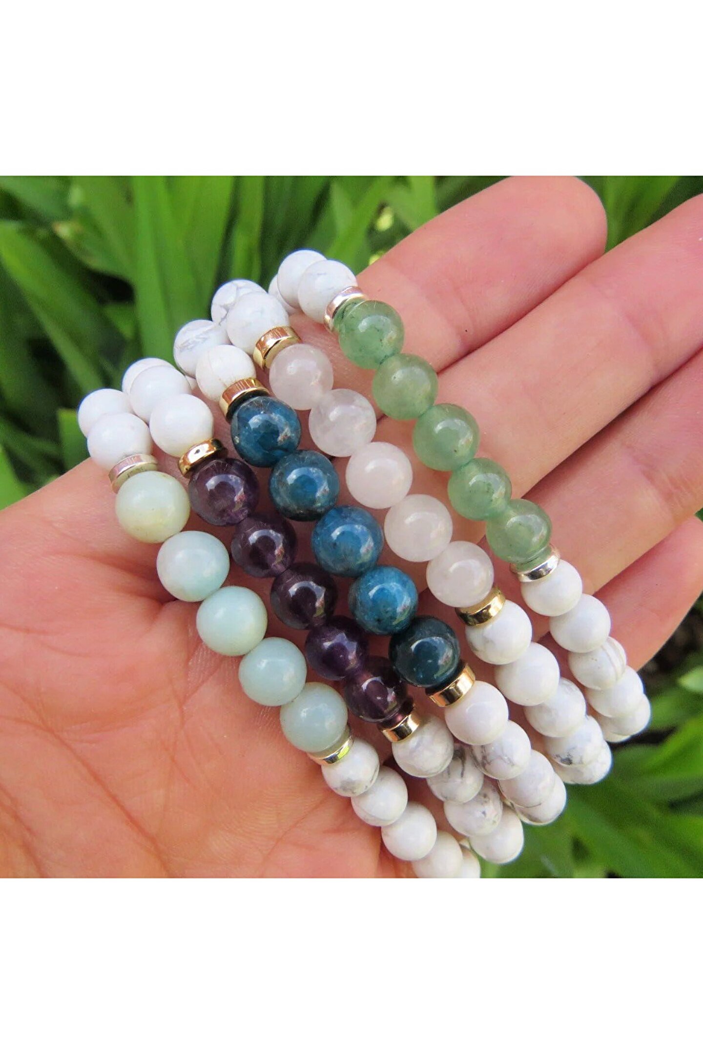 Mavera Doğaltaş Havlit-Pembe Kuvars-Ametist-Aventurin-Apatit Doğal Taş Bileklik 8mm