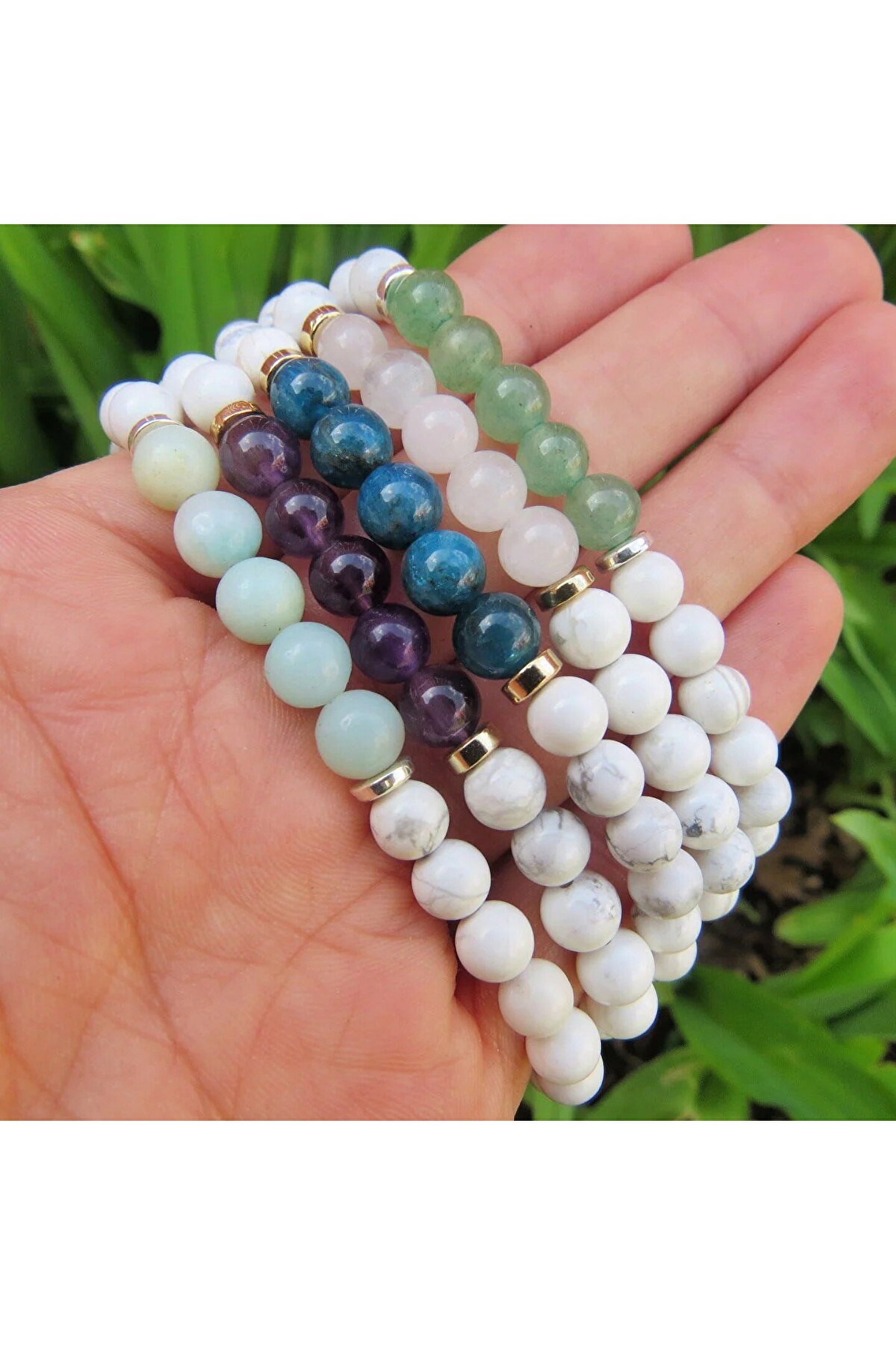 Mavera Doğaltaş Havlit-Pembe Kuvars-Ametist-Aventurin-Apatit Doğal Taş Bileklik 8mm