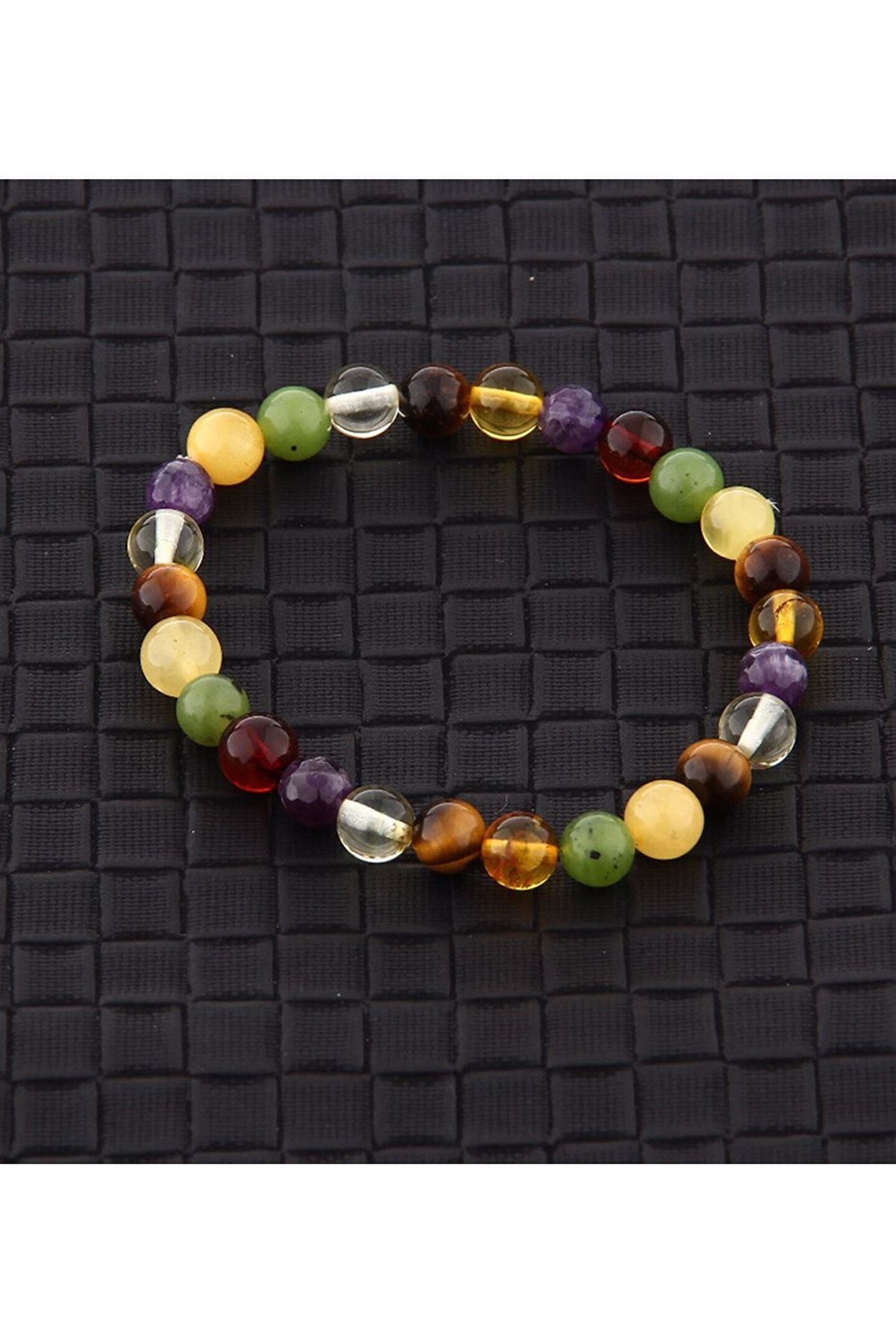 Mavera Doğaltaş Kaplan Gözü, Kehribar, Yeşim, Ametist Doğal Taş Bileklik 8 mm