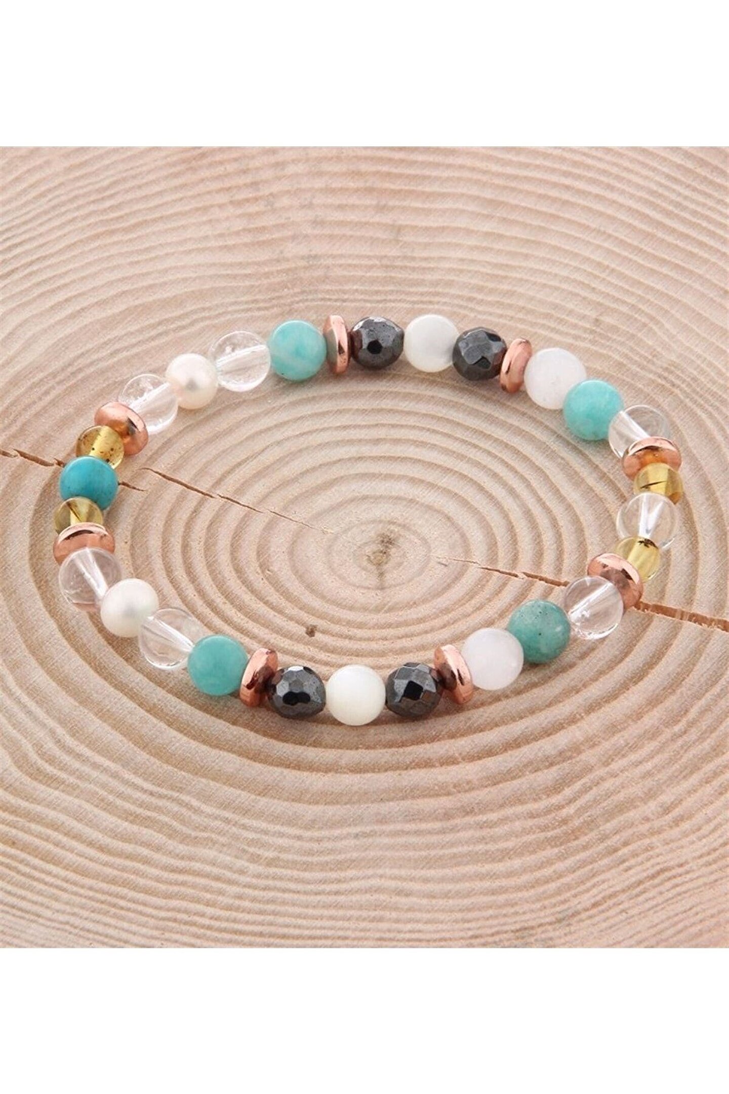 Mavera Doğaltaş Kuvars, İnci, Hematit, Kehribar, Amazonit Doğal Taş 8 mm Bileklik
