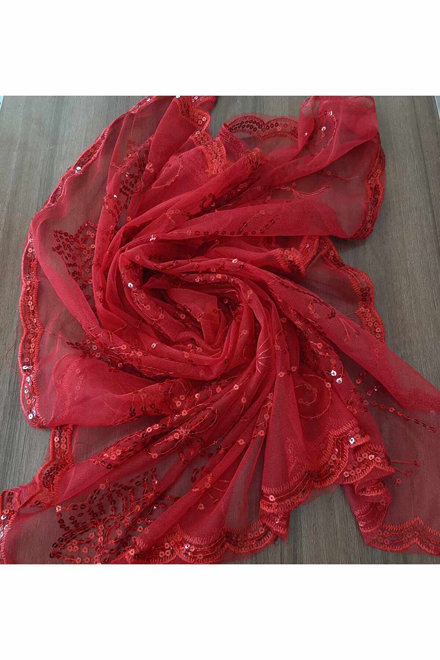 Zarif sim detaylarıyla süslenmiş, göz alıcı bir görünüm sunar; Kırmızı renk seçeneğiyle dikkat çekici ve şık bir stil oluşturur; Gelinlik veya özel gün kıyafetlerinize eşsiz bir dokunuş katar; Simli yapısı sayesinde ışığı yansıtarak parıltılı bir etki yaratır;