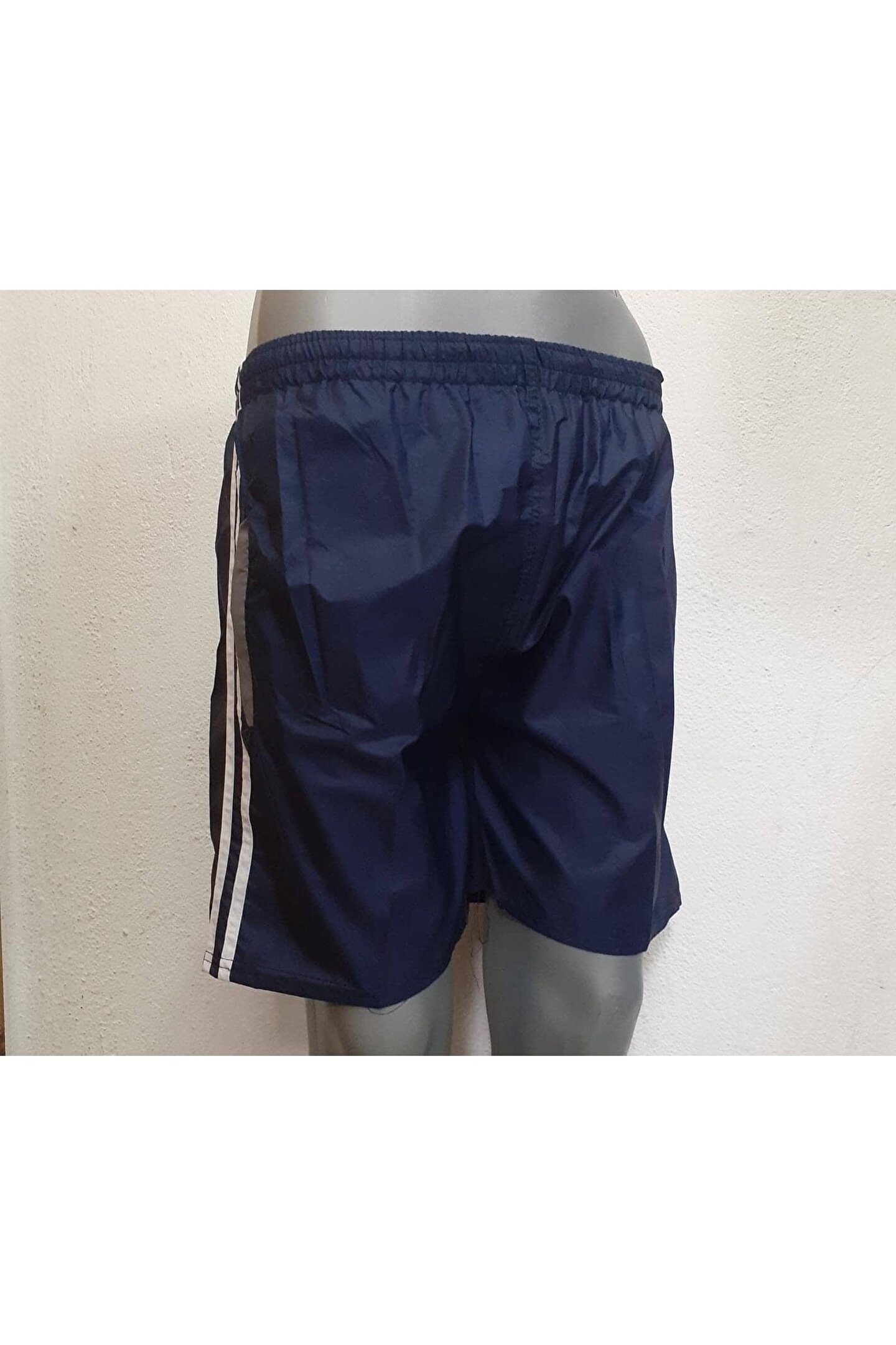 Şık ve modern tasarımıyla dikkat çeken lacivert gri şeritli şort, günlük kullanımda rahatlık ve stil sunar; Pratik cepli yapısı sayesinde küçük eşyalarınızı yanınızda taşımanız için idealdir; Beli lastikli tasarımı ile konforlu bir kullanım sağlar ve vücuda mükemmel uyum sağlar; Fermuarlı kapama şekli, kolay giyip çıkarmayı mümkün kılar ve şık bir görünüm kazandırır;