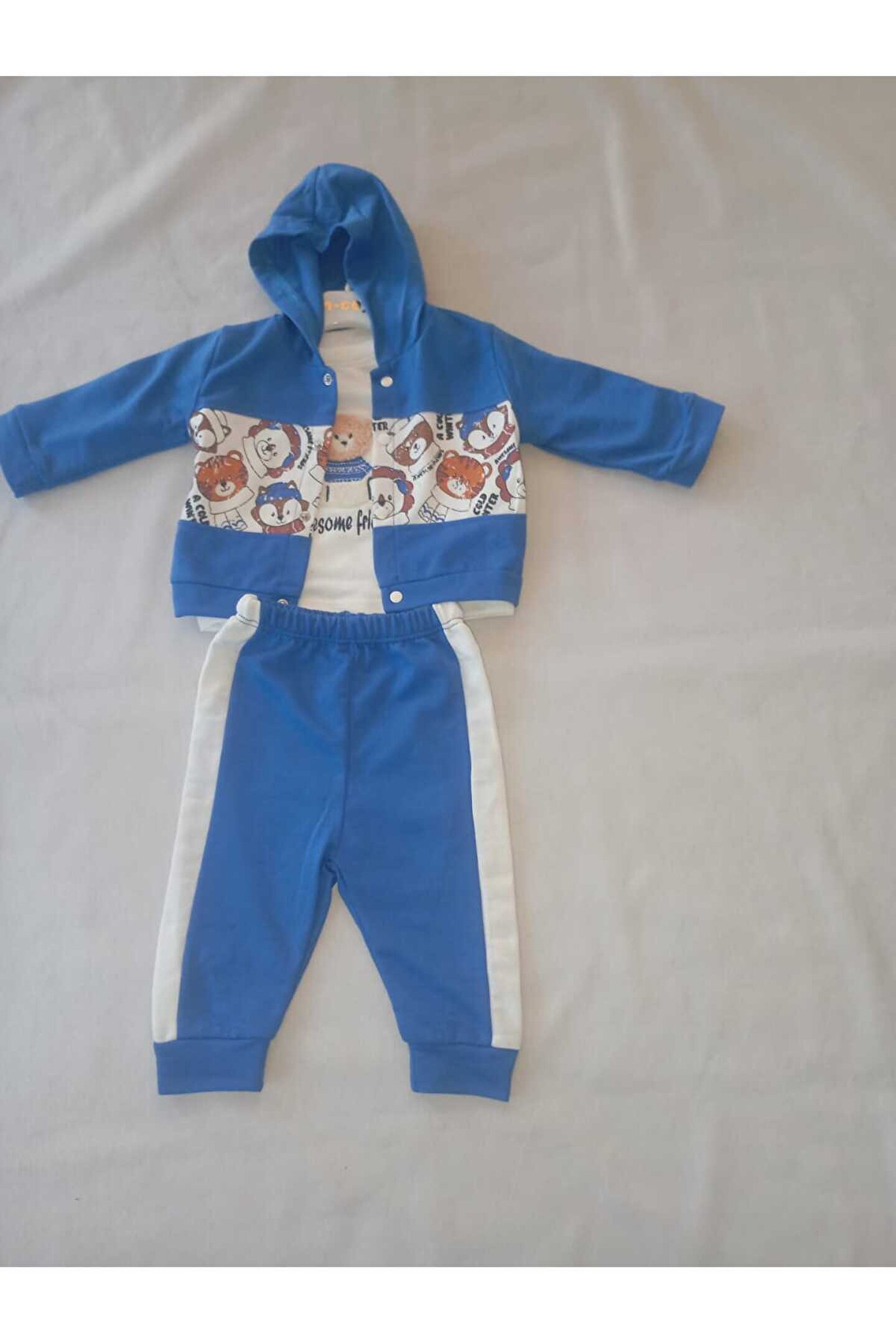 Her yaştan çocuğunuzun rahatça giyebileceği, tüm yaş gruplarına uygun tasarımıyla dikkat çeken mavi çıtçıtlı ceketli beyaz badili takım.; Modern ve şık oversize siluetiyle, bebeğinizin özgürce hareket etmesine olanak tanırken, aynı zamanda rahatlık sunar.; Hayvan desenleriyle süslenmiş bu takım, çocuğunuzun enerjisini yansıtacak sevimli bir görünüm kazandırır.; Regular boy kesimiyle bebeğinizin vücut hatlarını saran ancak sıkmayan bir yapıdadır.; Oversize kalıbı sayesinde rahat hareket etme özgürlüğüne sahip olan bu takım, bebeğinizin gün boyu konforunu arttırır.;
