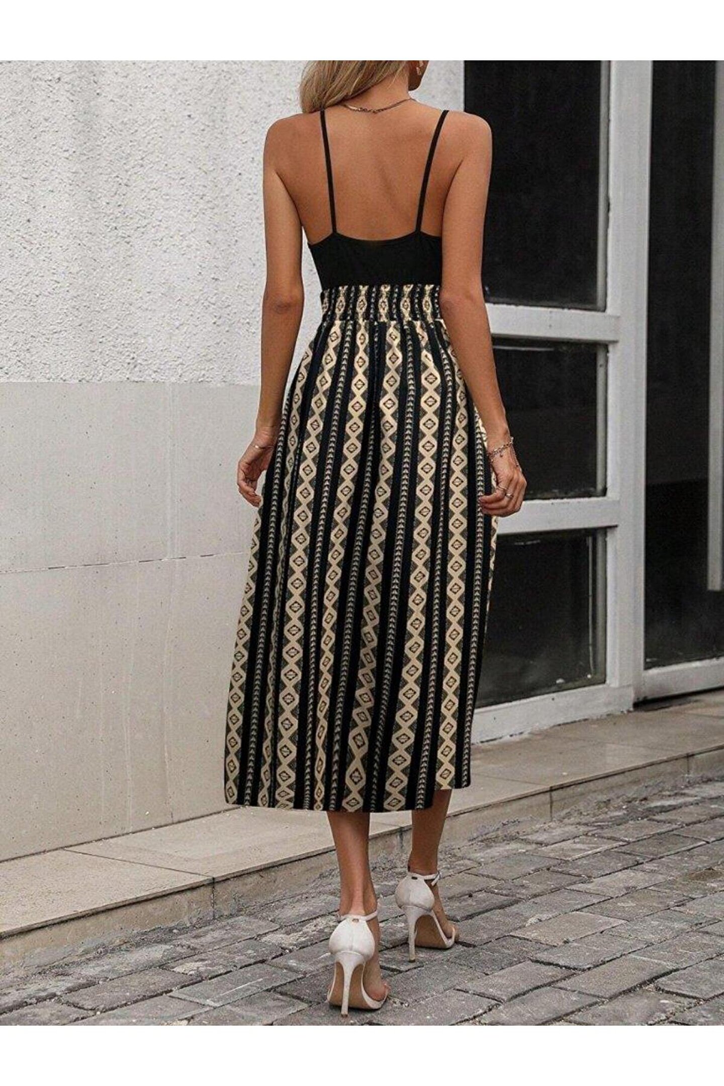 Mavrida Kadın Ip Askılı Kruvaze Yakalı üst Viskon Alt Desenli Süprem Elbise