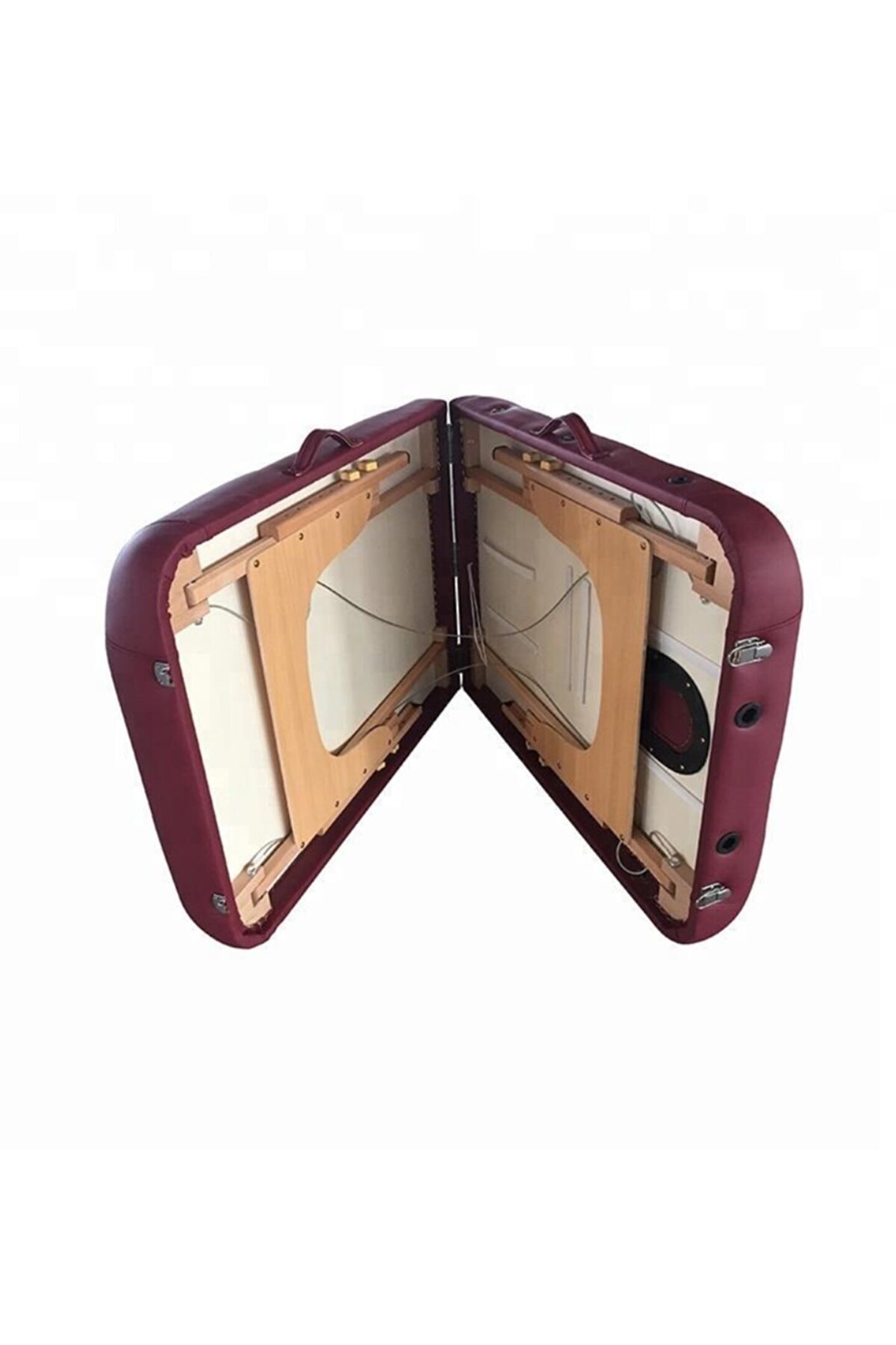 Maxi katlanabilir masaj yatağı ürün açıklaması: 2 parçalı ahşap masaj yatağı renk: Bordo yatak ölçüleri: Boy: 186cm, en: 70cm, yükseklik (ayarlanabilir): 59-80cm *(baş ve el koyma bölgeleri bu ölçülere dahil değildir) hasta taşıma kapasitesi: 250 kg çanta ölçüleri: 95x19x74cm paketleme: Karton kutu içerisinde, taşıma çantası ile birlikte gönderilmektedir. ; Net ağırlık : 15 kg kutu ağırlığı: 18 kg yüzeyi suni deridir. ; Kolayca temizlenebilir. ; Yatak üzerinde hamilelerin kolay kullanabilmesi için özel olarak dizayn edilmiş karın ve göğüs boşlukları vardır. ; Bu boşluk parçaları takılıp çıkarılabilir.;