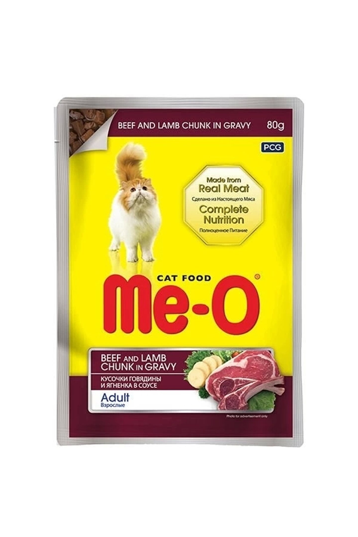 me-o Meo Adult Parça Etli Soslu Dana ve Kuzu Etli Yetişkin Konserve Kedi Maması 80 Gr