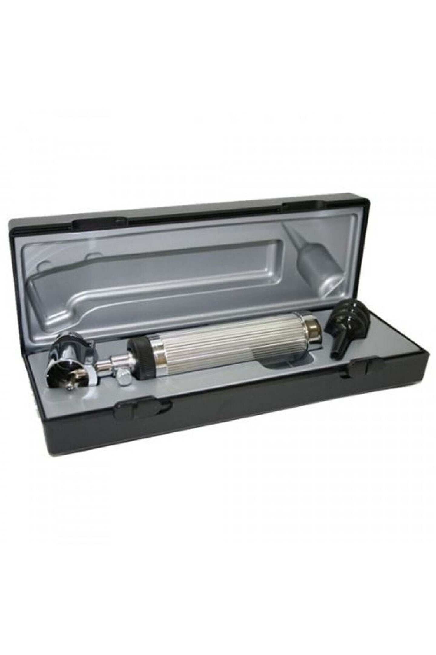 Riester UNI I Otoskop 2010 2.7 V Germany ; ; 25 mm çapında metal pil yuvası. Krom kaplama. Rehostalı açma kapama düğmesi ; 2.7v standart aydılatma Otoskop başlığı: krom kaplama, 1adet sabit lens, 1 adet 4x hareketli lens Pneumatik otoskopi için konnektör. 2, 3 ve 4 mm steril edilebilir spekülümler