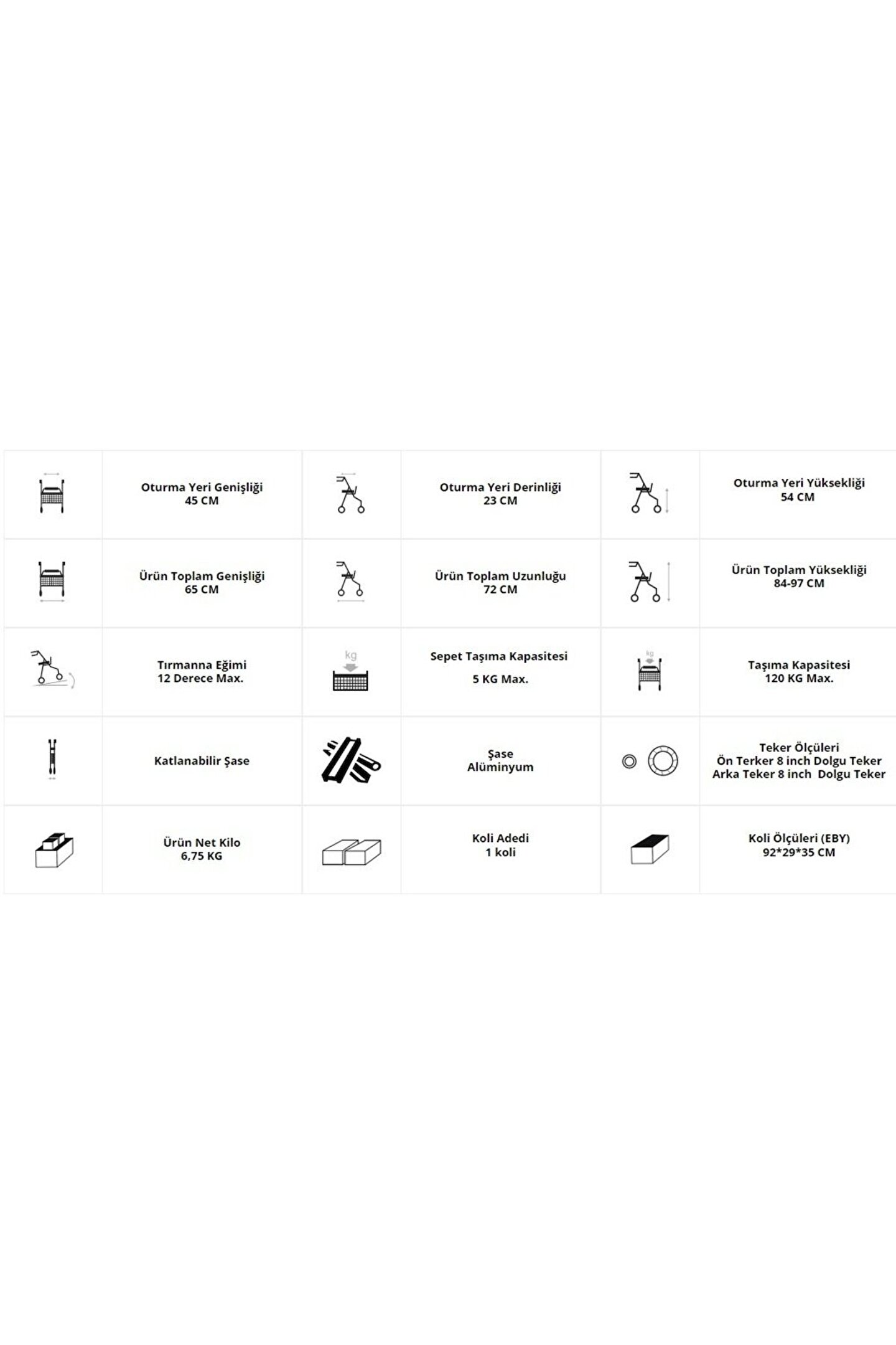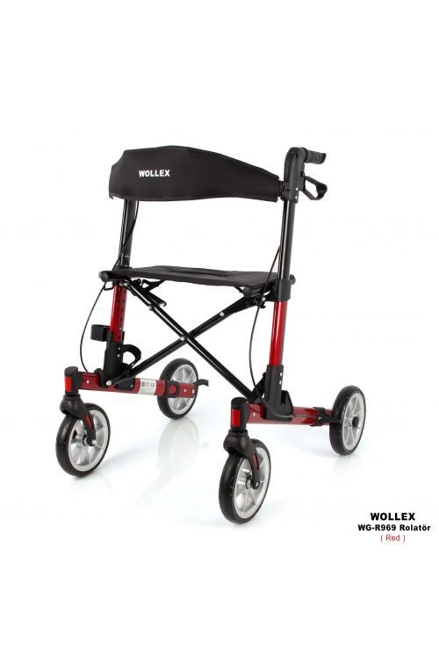 Alüminyum Tekerlekli Rolatör Kırmızı Alüminyum Tekerlekli Rolatör Beden: Standart beden 45 cm Gövde Yapısı: Alüminyum gövde. ; Demonte Özelliği: Kolaylıkla katlanabilir. ; Oturma Minderi / Sırtlık / Oturma yeri: Oturma yeri ve sırt şiltesi kolay temizlenebilir leke tutmaz kumaştan imal edilmiştir. ; Kolçak: Sürüş tutma kollarını 84 cm ile 97 cm arası istediğiniz ölçüde ayartabilirsiniz. ; Ön Tekeri: 8 inç dolgu ön teker, kendi etrafında 360 derece dönebilir, katlanabilir özellikte. ; Arka Tekeri: 8 inç dolgu arka teker Bagaj / Cep: Kullanıcının eşyalarını koyabileceği bir adet ön kısımda çanta bulunmalıdır. ; Fren Sistemi: Kilitlenebilir fren sistemi. ; İlave Özellikler: Baston taşıma aparatı.;