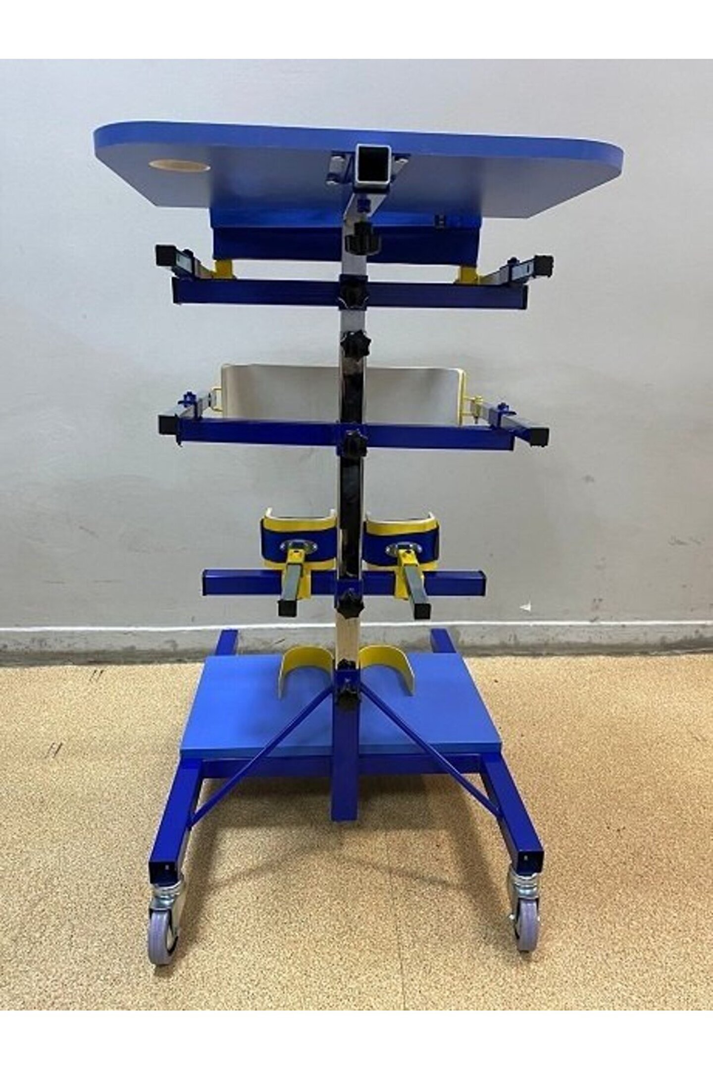 AYAKTA DİK DURMA SEHPASI Ayakta Durma Sehpası Dik Duruş Sehpası ÇOÇUK YETİŞKİN Ayakta dik durma sehpası vucud dengesine yardımcı ile dik pozisyonunda durabilmesi için 02, yaş çocuk ve yetişkin modelleri ile vucud dengesine yardımcı olan cihazdır. AYAKTA DURMA SEHPASI NASIL KULLANILIR Cp ayakta durma sehpası kullanımı kullanıcı hastanın cihazın içine girip ayaklarının üstüne basıp. Ayak eminyeti alınır. Diz destek ayarı yapılır. Bel destek bantı bağlanarak kalça dik bağlantı ayarı yapılır. Koltuk altı destek aparatı ile göğüs destek ayarı yapılır. Çalışma masası ayarı kol mesafesi ayarı yapılarak calışma masası ayarı yapılır. AYAKTA DURMA SEHPASI AYAR MEKANİZMALARI Kullanıcının ayaklarını sabitlemek için ayak bağlama mekanizması bacaklarını dik tutmak için diz kapağı destek mekanizması kalça bel dik ayarını sağlamak için kemer sıkma bandajı göğüs omuz dik durma pozisypnu için koltuk altı destek mekanizması ayar mekanizmalarından ayarlanır. CP AYAKTA DİK DURMA SEHPASI ÇEŞİTLERİ Cp ayakta dik durma sehpası çeşitleri kullanıcı hastalar için 3 çeşittir O2 yaş 11 yaş arası kullanıcıları için 11 yaş 16 yaş arası kullanıcılar için 16 yaş 45 yaş arası kullanıcılar için CP AYAKTA DİK DURMA SEHPASI GARANTİ VE BAKIMI Cp ayakta dik durma sehpası garantisi 2 yıldır kaliteli iskelet yapısıçelik ve ahşap malzemeden üretilmiştir, deforma olmaz Cp ayakta dik durma sehpasının bakım gerektiren her hangi bir mekanizması yoktur. Firmamız tarafından yerli üretim olan cihazın yedek parça sorunu yoktur. AYAKTA DİK DURMA SEHPASI KULLANIMI Vucud direnci eklem mekanizmalarının gelişimi için fizik tedavi doktorlarının hastasına belli bir program dahilinde tavsiye edilerek alınıp kullanılan cihazdır. Hasta ve hasta sahipleri bu cihazı doktor tavsiyesi ile alınıp kullanılan üründür. Yetişkin ve Çocuk Boyları Vardır.">