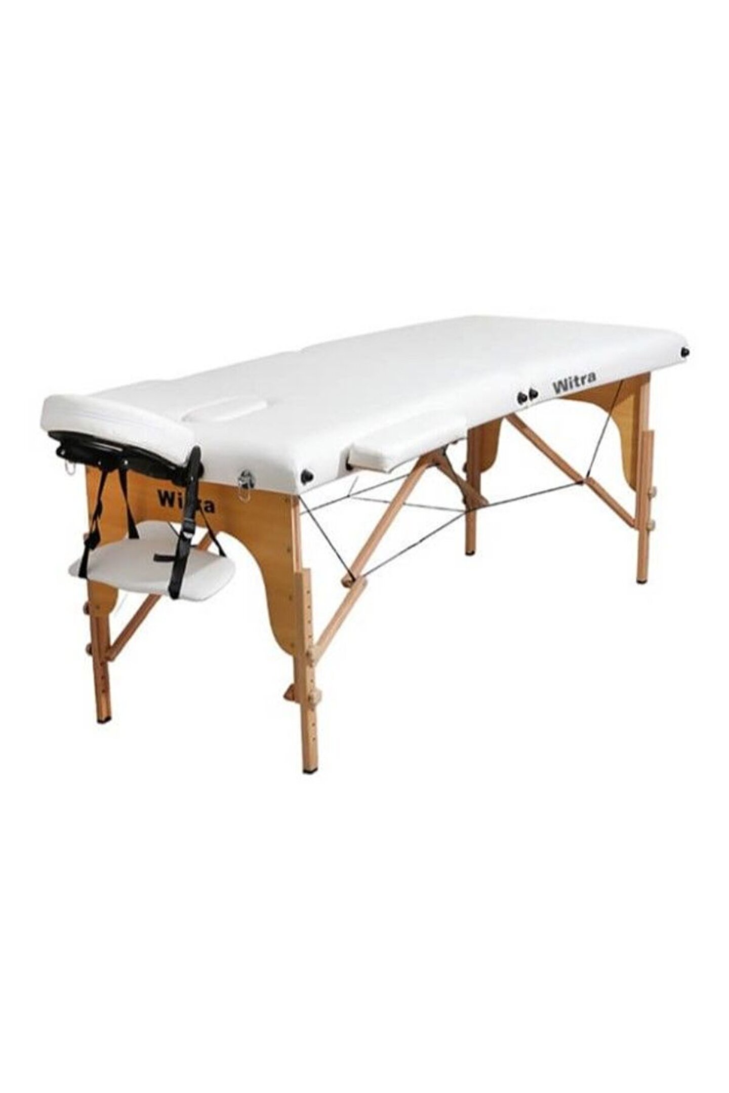 Beyaz 2 Parçalı Katlanabilir Masaj Yatağı Beyaz 2 Parçalı Katlanabilir Masaj Yatağı, kullanıcıların rahatlığını ön planda tutarak tasarlanmıştır.; 185 cm x 66 cm boyutları ve ayarlanabilir yüksekliği ile geniş bir kullanım alanı sunar.; Sağlam ahşap yapısı sayesinde 220 kg’a kadar taşıma kapasitesine sahip olan bu yatak, estetik bej suni deri yüzeyi ile dikkat çeker.; Ergonomik bel ve boyun boşlukları, konforlu bir masaj deneyimi sağlar.; Taşıma çantası ile birlikte gelen yatak, kolay taşınabilir ve depolanabilir.; Beyaz 2 Parçalı Katlanabilir Masaj Yatağı, konfor ve dayanıklılığı bir arada sunar.