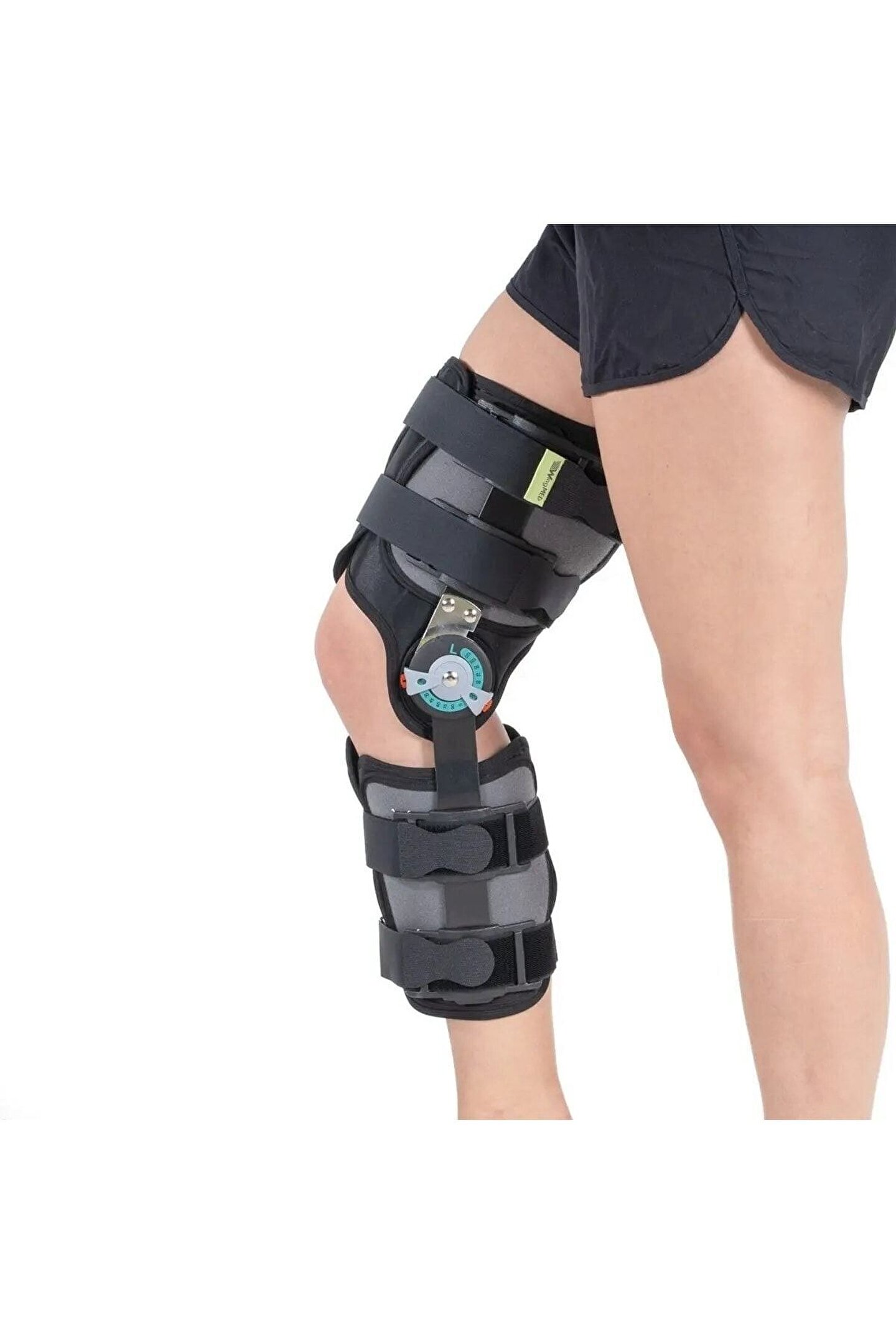 W516 (Kısa) Butonlu Açı Ayarlı Dizlik (Kısa) Anatomik bacak şekline uygun olarak tasarlanmış alüminyum bar ve cilde temas eden yüzeyleri havlu kumas olan derece ayarlı diz ortezidir.; Fleksiyon (0°, 15°, 30°, 45°, 60°, 75°, 90°, 105°, 120°) ve ekstansiyon (-15°, 0°, 15°, 30°, 45°, 60°, 75°, 90°) derece ayarı yapılır.; Diz yaralanmaları sonrası mükemmel bir stabilizasyon ve destek sunar.; Ameliyat ve travma sonrası rehabilitasyon döneminde koruyucu olarak kullanılır ve dizin R.; O.; M.; kontrolünü sağlar.; Kısa ve uzun olarak 2 boyu vardır.