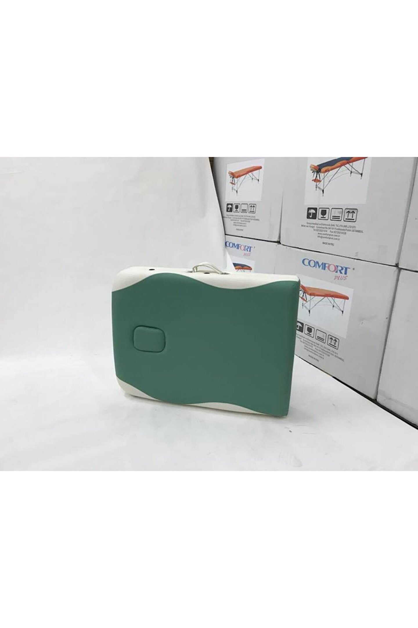 Çanta Tipi Masaj Masası Alüminyum Masaj Masası Baş Tarafı Ayarlanabilir – çanta tipi masaj masası Ürün Özellikleri:Çanta Tipi Masaj Masası aliminyum yeşil/beyaz 1- Ürün vinyl deri, Alüminyum ayak ve kablolardan oluşmaktadır. ; 2- Ürünün yüksekliği 54 cm ve 82 cm aralığında ayarlanabilir. ; 3- Ürünün kafa ve el konulan kısımları da katlanabilir özelliğe sahiptir. ; 4- Ürünün sırt üstü ve yüz üstü olmak üzere iki şekilde de yatarken ellerinizi koymak için yerleri vardır. ; 5- Ürünün kurulumu gayet kolay olup, herhangi bir alete gerek yoktur. ; 6- Ürünün bir adet kumaş çantası bulunmaktadır. ; Ürün katlanmış şekilde bu çantanın içine konularak taşınabilir.;