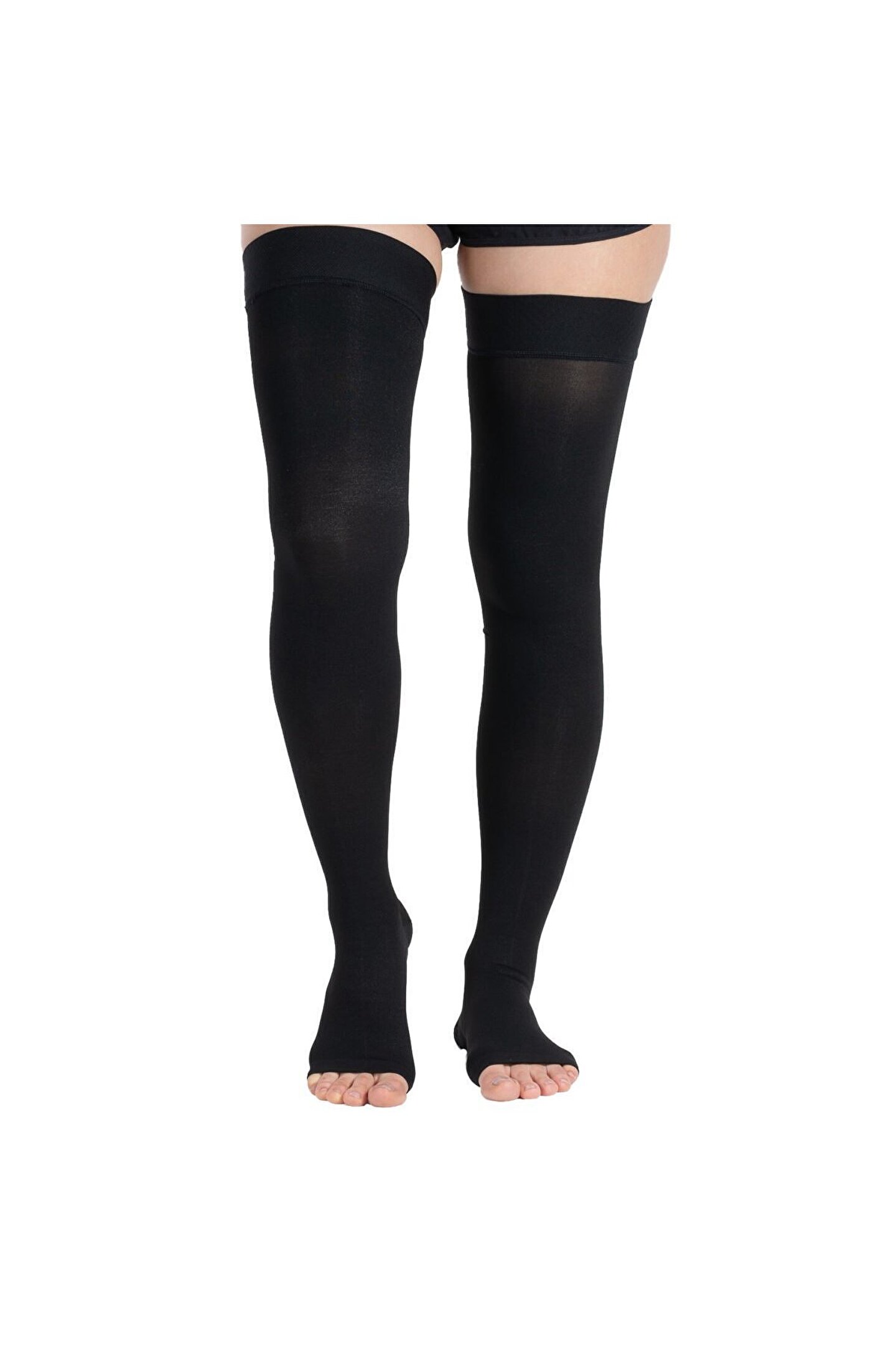 MEDİKALCİM Ccl2 Diz Üstü Burnu Açık Çorabı (Siyah) NUMARA 3