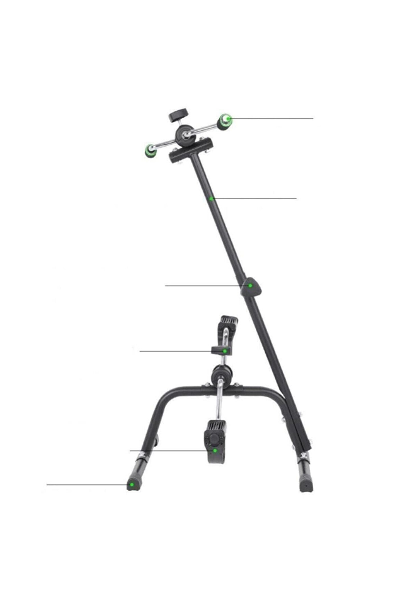 Alt ve üst ekstremite için 2 adet basit pedalı mevcut olup bu pedalların direnci ayarlanabilmektedir.; Kas kuvvetinin gelişimine ve hareketi stimüle ederek hareket kabiliyetini artırmaya olanak sağlar.; 50X14X21 cm boyutlarındadır, ağırlığı 4 kg, net ağırlığı 3,7 kilogramdır