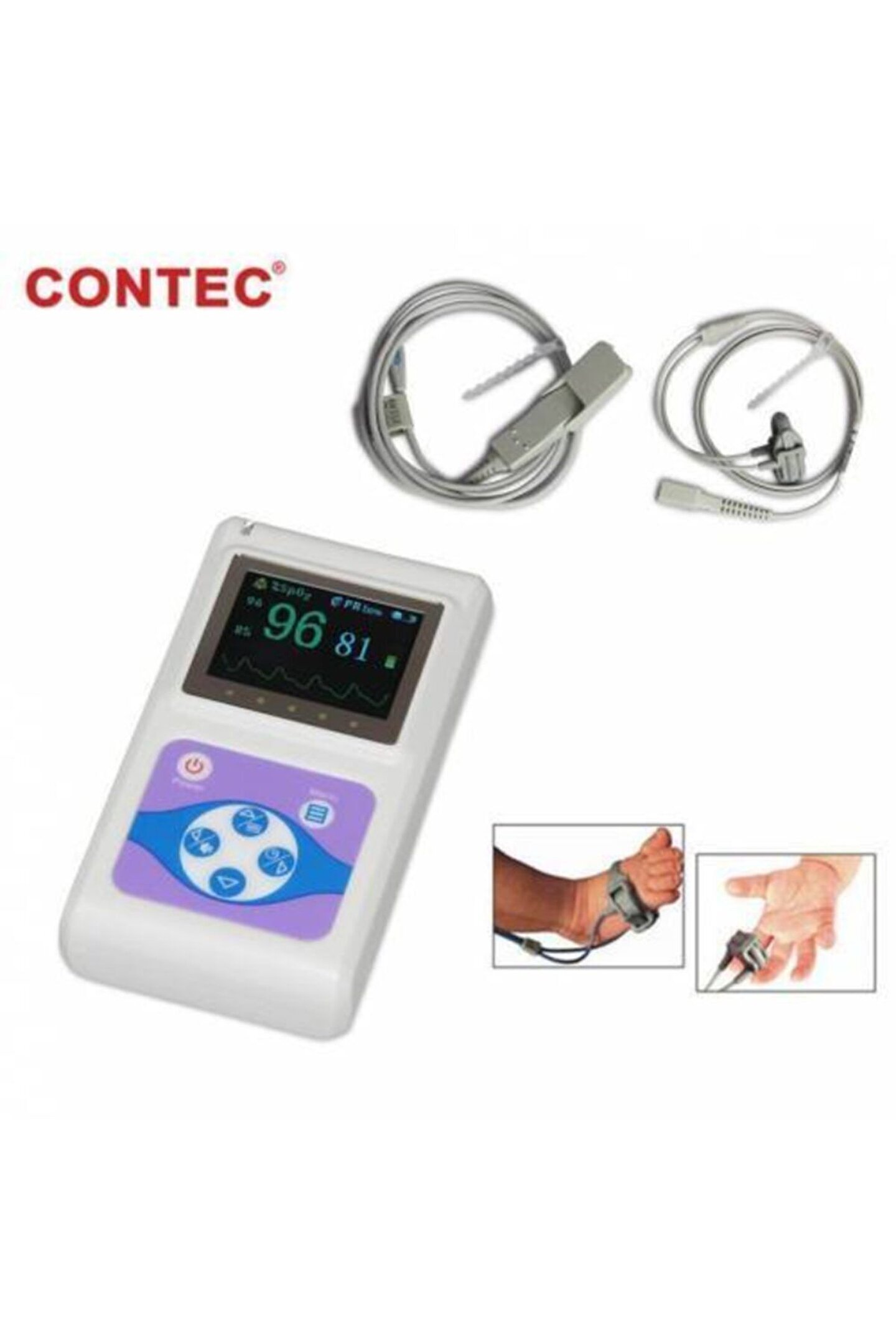 CMS60D Nabız Oksimetresi, SpO2 ve nabzı parmakla ölçmek için kullanılabilen Kapasite Nabız Tarama ve Kayıt Teknolojisine uygun Fotoelektrik Oksihemoglobin Muayene Teknolojisini benimser .; Hastane, oksijen bar, toplum sağlığı ve egzersiz sağlık hizmetlerinde kullanılabilir , (Egzersizden önce veya sonra kullanılabilir, ancak egzersiz sırasında kullanılması önerilmez).; Kullanıcı dostu nabız oksimetresi Contec CMS60D, özellikle hastanızın oksijen doygunluğunu ölçmek için tasarlanmış profesyonel bir nabız oksimetresidir.; Cihaz kompakttır ve taşınması kolaydır.; Doygunluk seviyesini ve kalp atış hızını ölçecek misiniz? Oksimetreyi elinizde tutun ve hastanızın parmağını 140 cm'lik bir kablo ile cihaza bağlı olan sensöre yerleştirin.; Ölçülen veriler LCD ekranda görünür.; Ölçülen değerler minimum değerin altına düşerse veya maksimum değerin üzerine çıkarsa bir alarm ayarlanabilir.; CMS60D'yi birden fazla hastayla kullanıyor musunuz? Ardından, tıbbi amaçlar için kullanmadan önce ve sonra sensörün içini alkolle temizleyin.; Dışını nemli bir bezle temizleyin.; Cihazı asla suya batırmayın.; Parlak LCD ekran Hastanın verilerini Contec CMS60D'nin LCD ekranında kolayca okuyabilirsiniz.; Solda oksijen doygunluğu mavi sayılarla gösterilir.; Sağda, kalp atış hızı yeşil sayılarla gösterilir.; En altta, nabızda kalp atış hızını gösteren bir grafik bulacaksınız.; Kontrol panelindeki düğmelerle LCD ekranın parlaklığını kolayca ayarlayabilirsiniz.; Bu işlev, aydınlık veya karanlık bir odada ölçüm yapmanızı sağlar.; Pil durumu göstergesi de ekranda görüntülenir, böylece pilleri tam olarak ne zaman değiştirmeniz gerektiğini görebilirsiniz.; Bilgisayarda veya dizüstü bilgisayarda canlı izle Bir bilgisayardaki verileri hastanızla birlikte kolayca izleyebilir ve gerekirse verileri yükleyebilirsiniz.; Bunun için önce gerekli yazılımı indirmeniz gerekir (talimatlar dahil).; CMS60D'yi avuç içi nabız oksimetrenizle birlikte verilen USB kablosuyla bir bilgisayara veya dizüstü bilgisayara bağlayın.; Ölçüm sırasında hastanın oksijen doygunluk seviyesini ve kalp atış hızını ekranda izleyebilirsiniz.; Daha sonra bir hasta dosyası oluşturmak için ilgili bilgilerle bir genel görünüm yazdırmayı seçebilirsiniz.; Aygıtın ayrıca dahili bir belleği vardır, böylece bir bilgisayara bağlı olmadığında geçmiş ölçümleri inceleyebilirsiniz.; Hacimde küçük, hafif ve taşıması kolay.; Kullanımı kolay ve basit, düşük güç tüketimi.; Fonksiyon menüsü ile.; SpO2 değerinin görüntülenmesi.; PR değeri ve çubuk grafik gösterimi.; Nabız dalga formunun görüntülenmesi.; Ayarlanabilir ekran parlaklığı, PR ses göstergesi.; İnceleme işlevi.; Saat işlevi.; Aşırı limit ve düşük pil için sesli uyarı.; Pil durumu göstergesi.; 32 Saate kadar pil ömrü.; Düşük pil göstergesi.; SpO2 ve PR değerleri için depolama fonksiyonu ve saklanan veriler PC'ye yüklenebilir.; Gerçek zamanlı veriler PC'ye yüklenebilir.; Harici SpO2 probu bağlanabilir.; 2xAA Pil ile kullanılır.; KUTU İÇERİĞİ: Contec CMS60D Taşınabilir Oksimetre 2 adet AA pil Çocuklar İçin Prob USB kablosu Kullanım kılavuzu 2 YIL GARANTİLİ