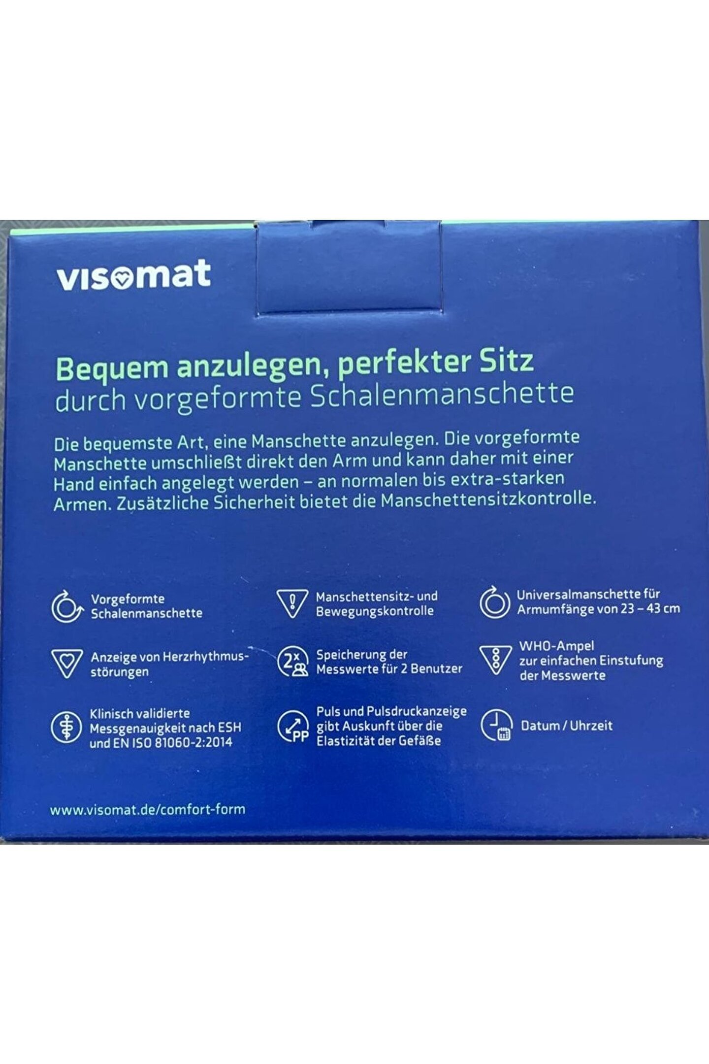 Visomat Comfort 20/40 Çift Hafızalı Üst Koldan Ölçme Tansiyon Aleti Ölçümleri Klinik Olarak Test Edilmiştir Düzensiz Nabız Göstergesi Manşet Kontrolü Hareket Kontrolü 2 x 120 Hafıza Işıklı Ekran 23-43 cm Manşet Saat ve Tarih Özelliği Özel Taşıma Çantası
