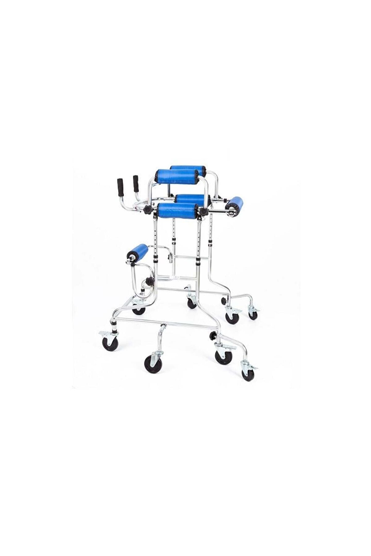 Comfort Plus DM-914C Çocuk Hemipleji ve Alt Ekstremite Eğitim Yürüteçi Paslanmaz Krom Kaplı Profilden Üretilmiştir.; Boy Yüksekliği Kolayca Ayarlanır Kullanıcı Fren Sistemi Frenli Tekerlekler 8 Adet Tekerleklidir Doğuştan yada sonradan oluşan nedenlerden dolayı, hareket kabiliyeti kısıtlı kişilerin hareket kabiliyeti kolaylaştırmak ve mümkün olduğunca fazla bağımsızlık kazandırmak için tasarlanmış yürüteç walker modelidir.; Çocuk yürüteç modelimiz Comfort Plus DM-914B hastalığı veya doğuştan gelen engeli nedeniyle yürümekte zorlanan çocuk hastalar için dizayn edilmiş yürüteç modelimizdir.; Kişinin boyuna göre yüksekliği ayarlanabilen yürüteç modelimizde kullanıcı güvenliği ön planda tutulmuştur.; Cihazı kullanacak kişi cihazın içerisinde girdiğinde tam olarak güvenlikte olur.; Bacak arası desteği bulunan ürünümüzde hasta bir şekilde düşse bile kesinlikle zarar görmez.; Cihazda bulunan el freni sayesinde ürünü kullanan kişi tarafından istediği zaman cihazı durdurabilir yapıdadır.; Çocuk yürüteç modelimiz cihazı kullanan kişi için iyi bir egzersiz aletidir.; Ürün hasta kişide kas gelişimini sağlar veya mevcut hastalığın ilerlemesini engeller.; Comfort Plus DM-914C modelimiz sadece hareket kabiliyetini kolaylaştırmak için değil, aynı zamanda iyi bir egzersiz ürünü ve kas çalıştırıcı, güçlendirici olan rehabilitasyon ürünüdür.; Toplam Uzunluk: 96,5 cm Toplam Genişlik: 96cm Toplam Yükseklik: 91,5-109,5 cm Koltuk Yüksekliği: 54 cm Koltuk Genişliği: 38 cm Koltuk Derinliği: 39 cm Boru Çapı: 22 mm Boru Kalınlığı: 1 mm Malzem Cinsi: Metal Ağırlığı: 11,5 kg